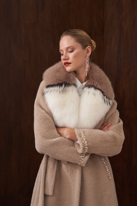 Çift Renk Kürklü Elişi Detaylı Angora Kaban