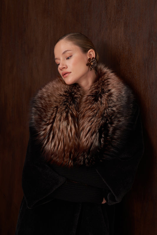 Elmas Desen Kapitone Detaylı Kürklü Angora Kaban