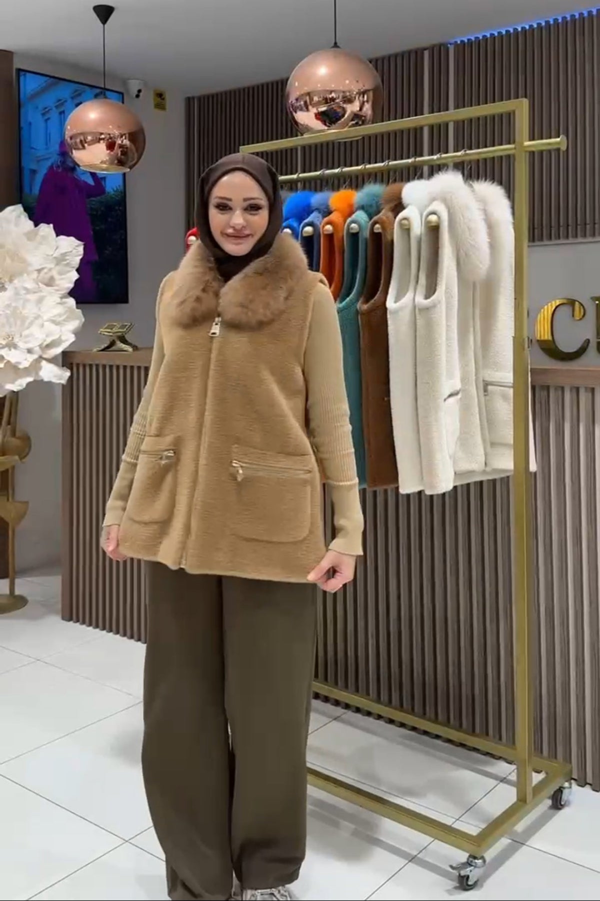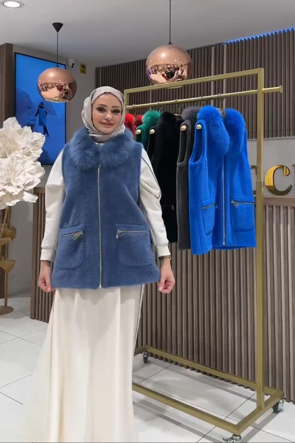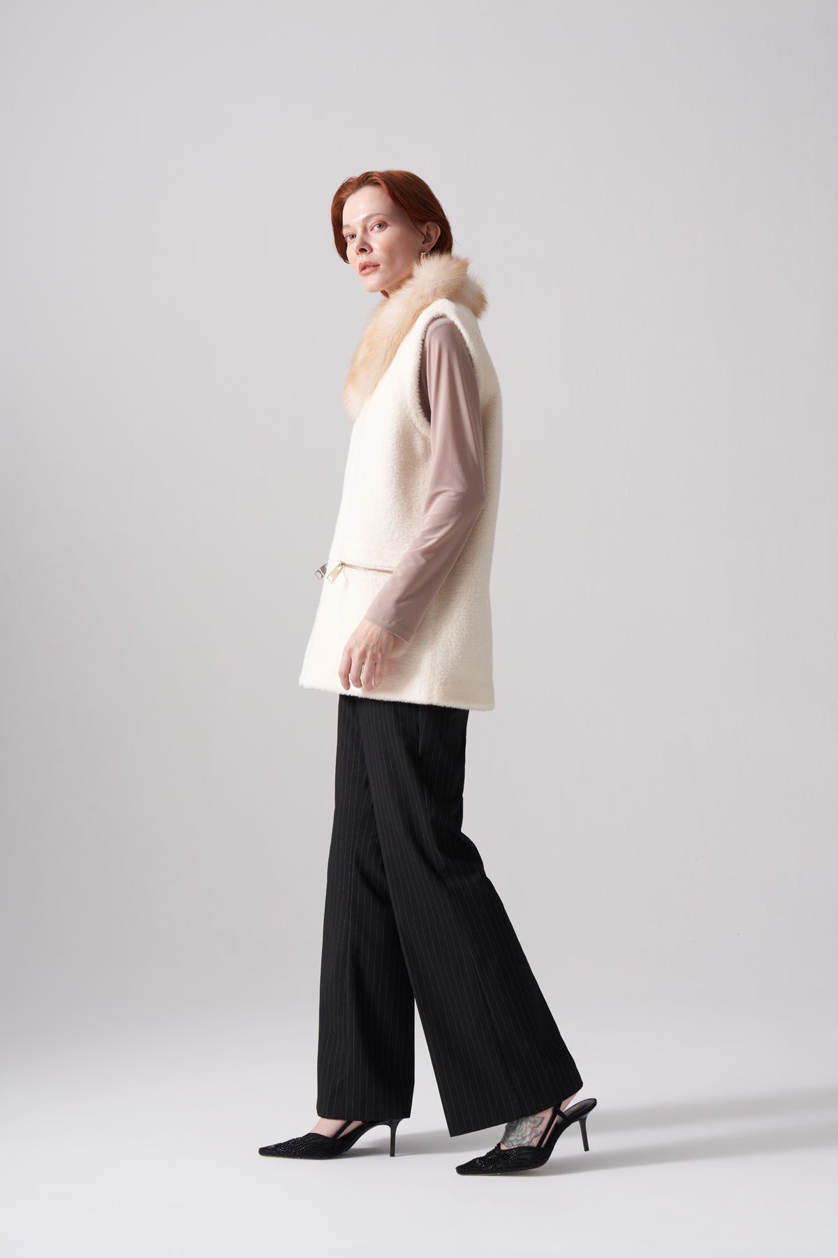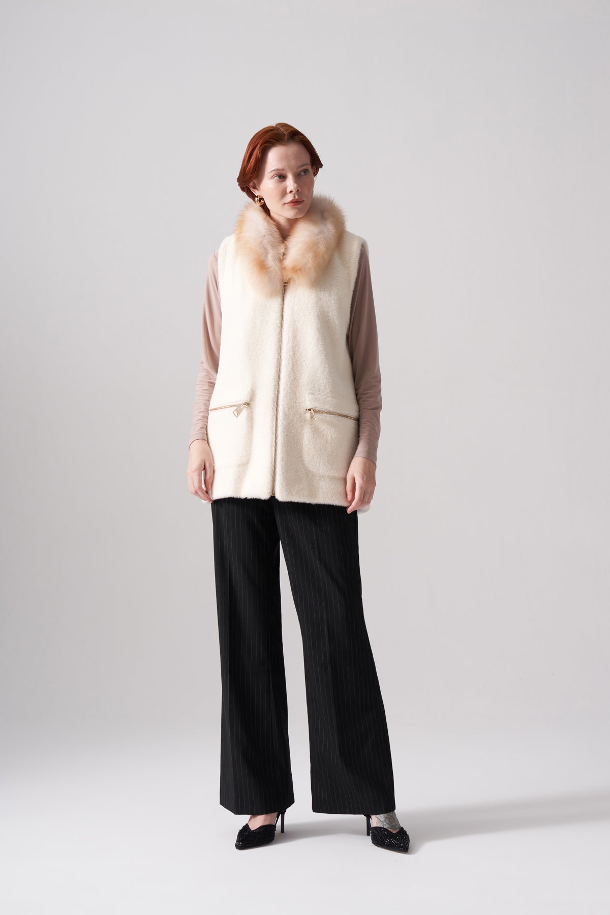 سترة أنجورا بياقة من الفرو