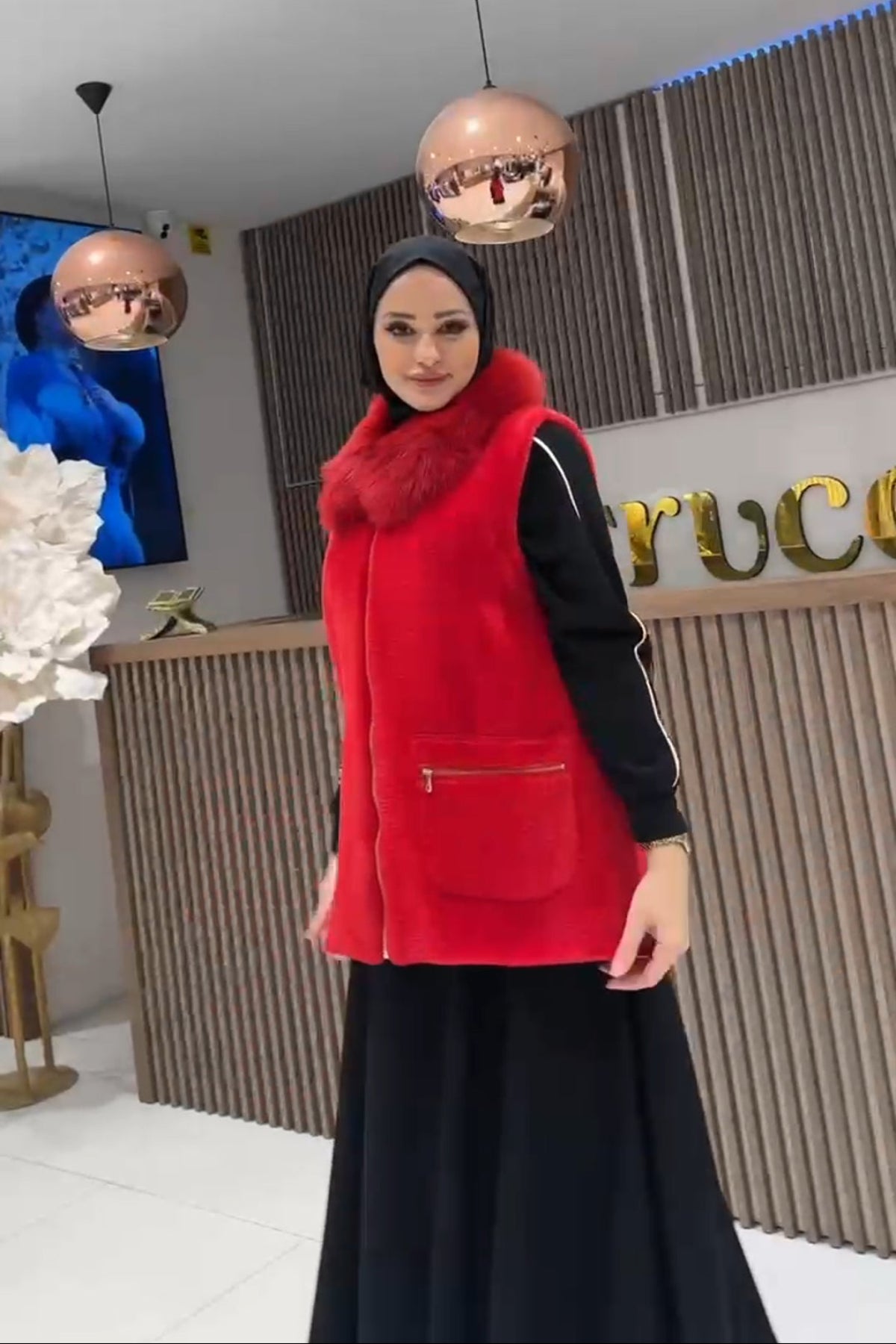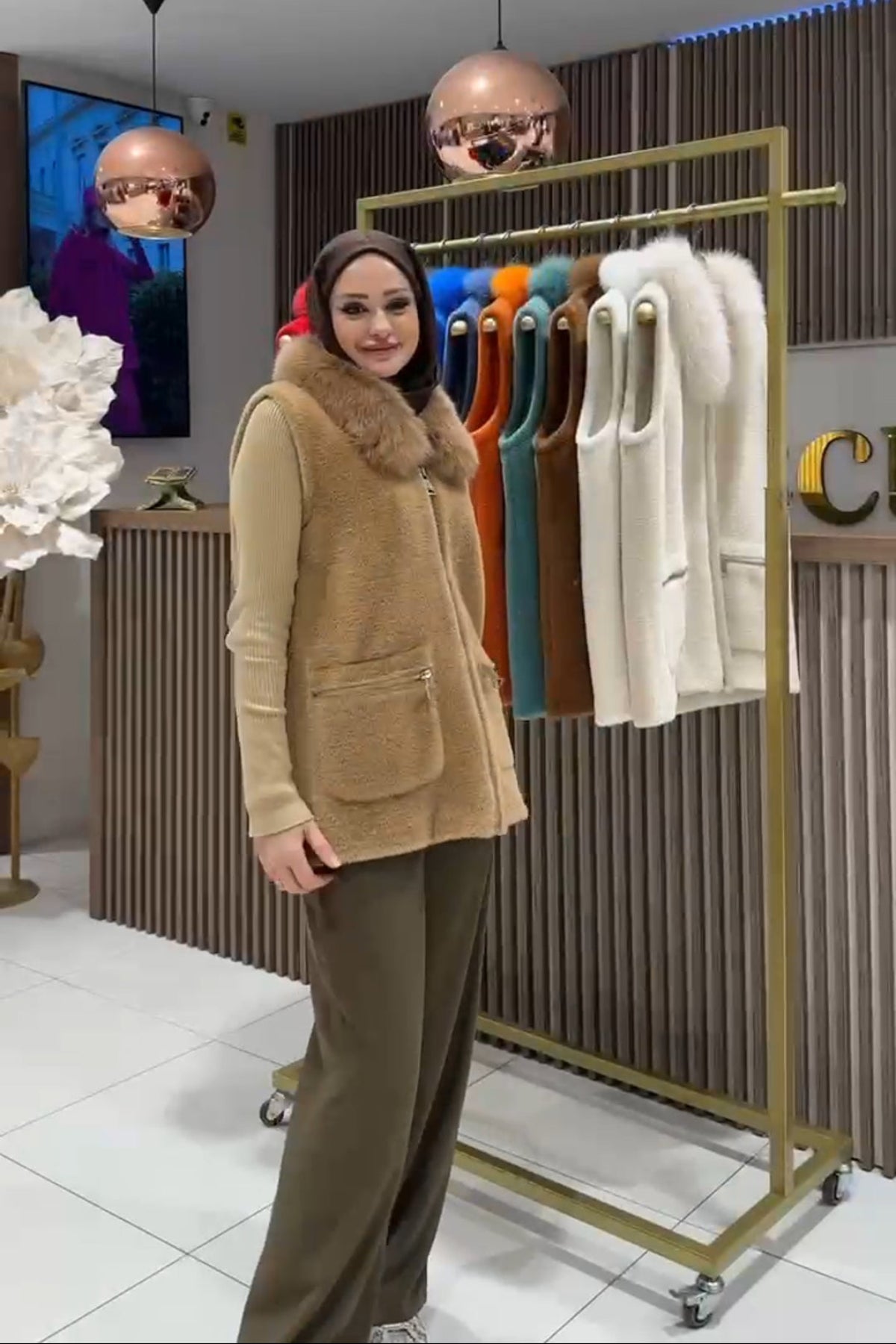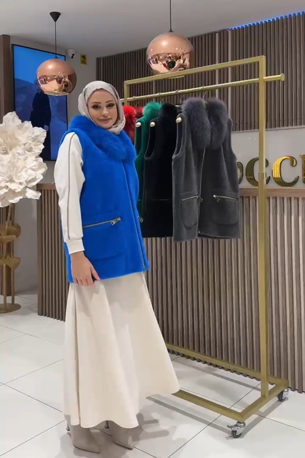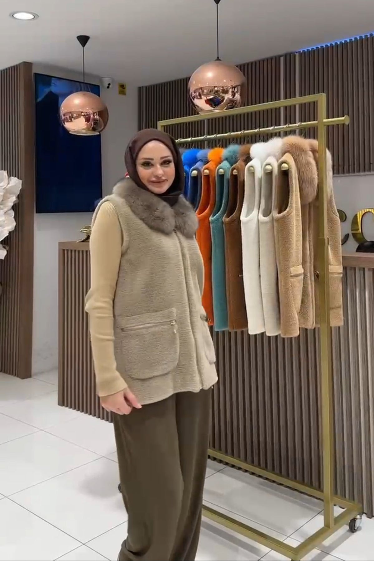 سترة أنجورا بياقة من الفرو