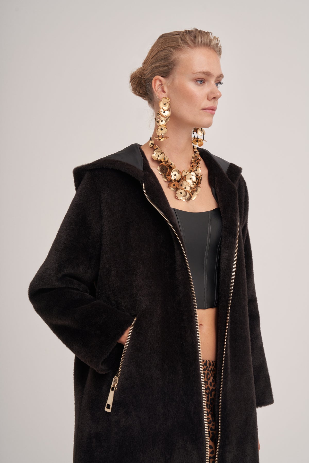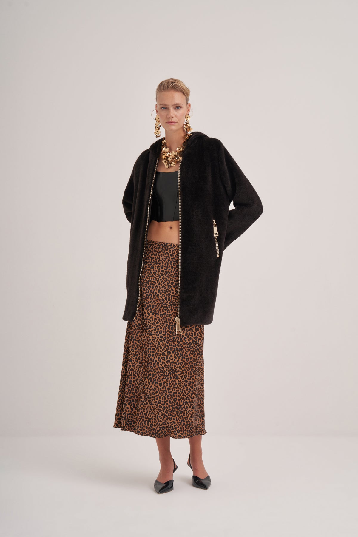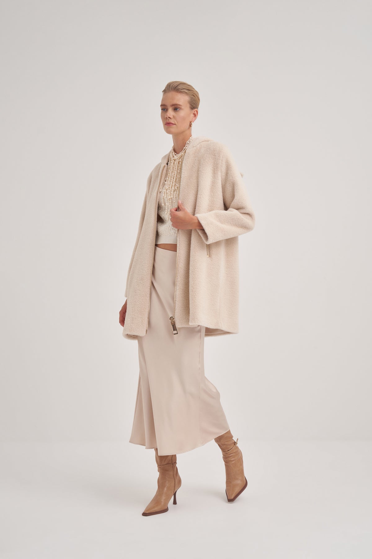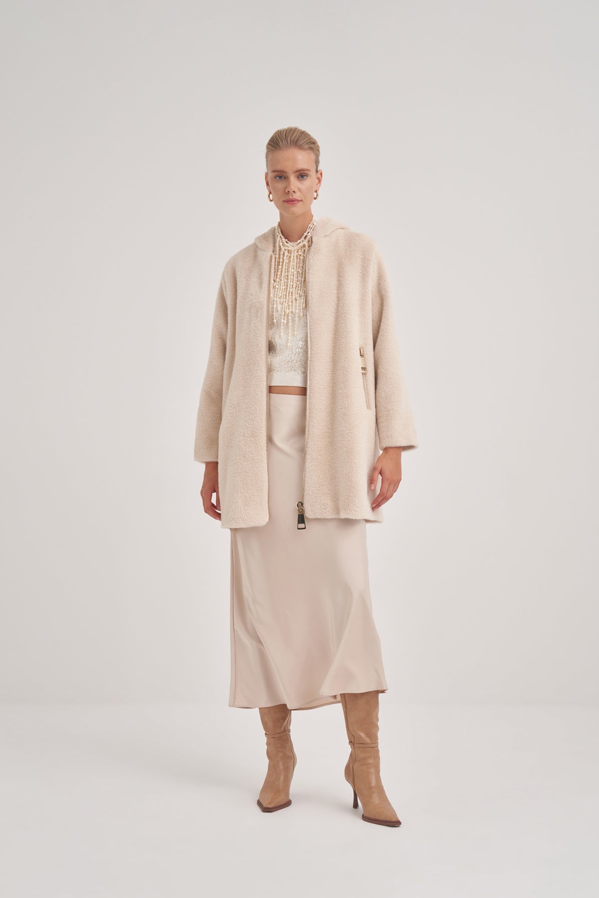 معطف قصير بسحاب كبير في الأمام وجيوب.