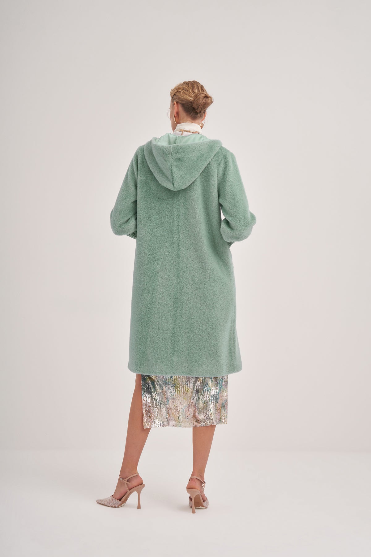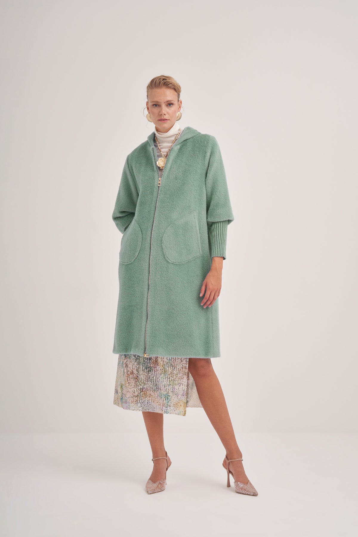 سترة أنغورا محبوكة بغطاء رأس