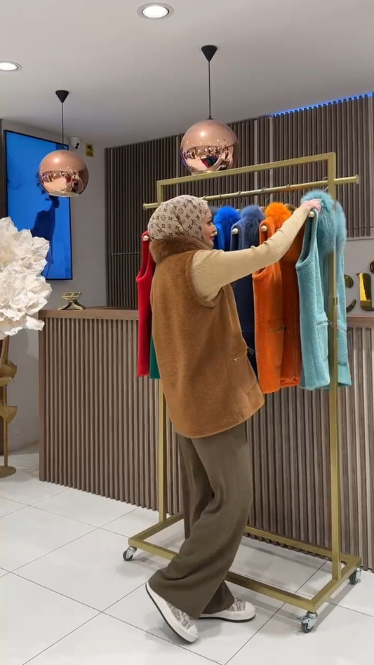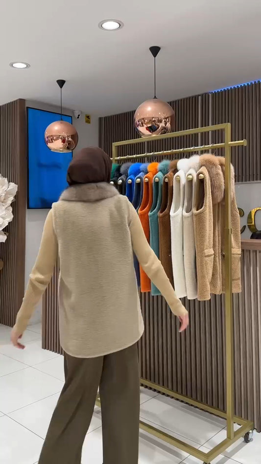 Kürk Yakalı Angora Yelek - Mint Yeşili