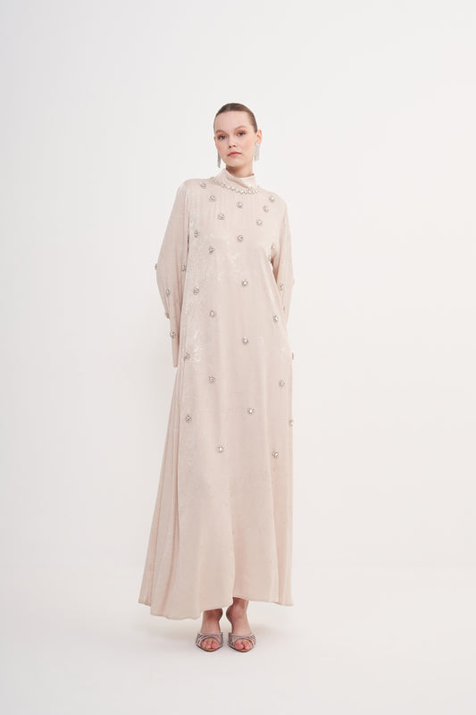 Özel Taş ve Boncuk Detaylı Elbise - Bej