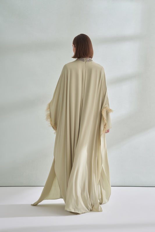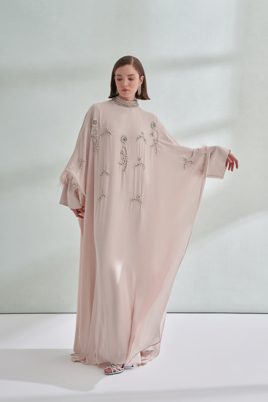 Taş İşleme ve Tüy Detaylı Pelerin Detaylı Elbise - Mimoza