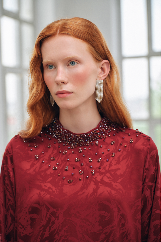 Özel Taş ve Boncuk Detaylı Elbise - Bordo