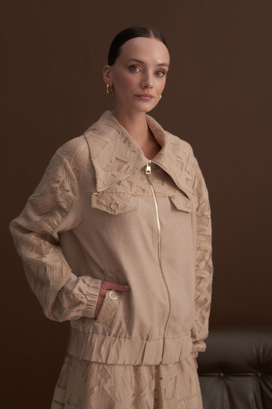 Fermuar Detaylı Kupra Takım - Bej