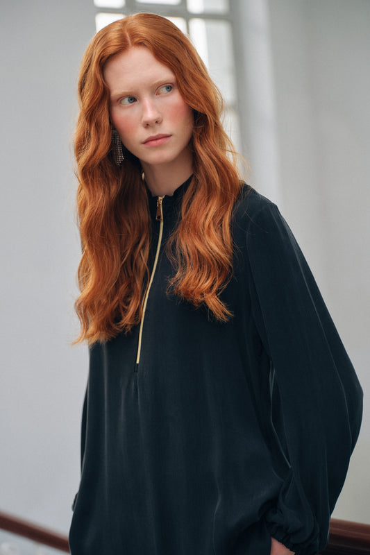 Fermuar Detaylı Kupra Takım - Siyah