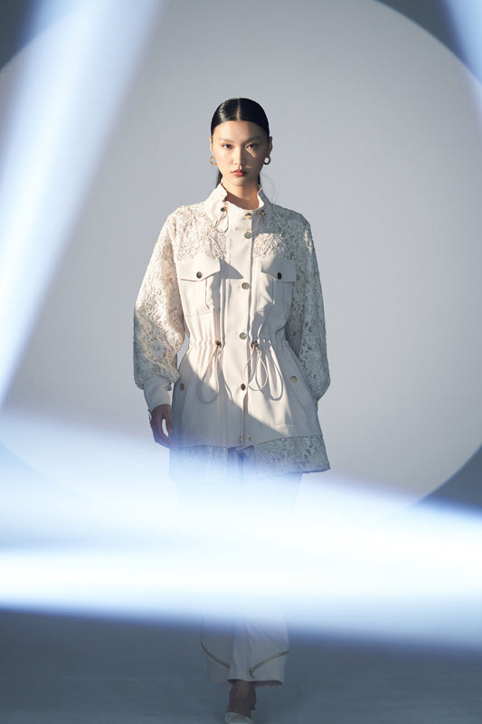 Cep Detaylı Dantel Ceket Takım - Bej