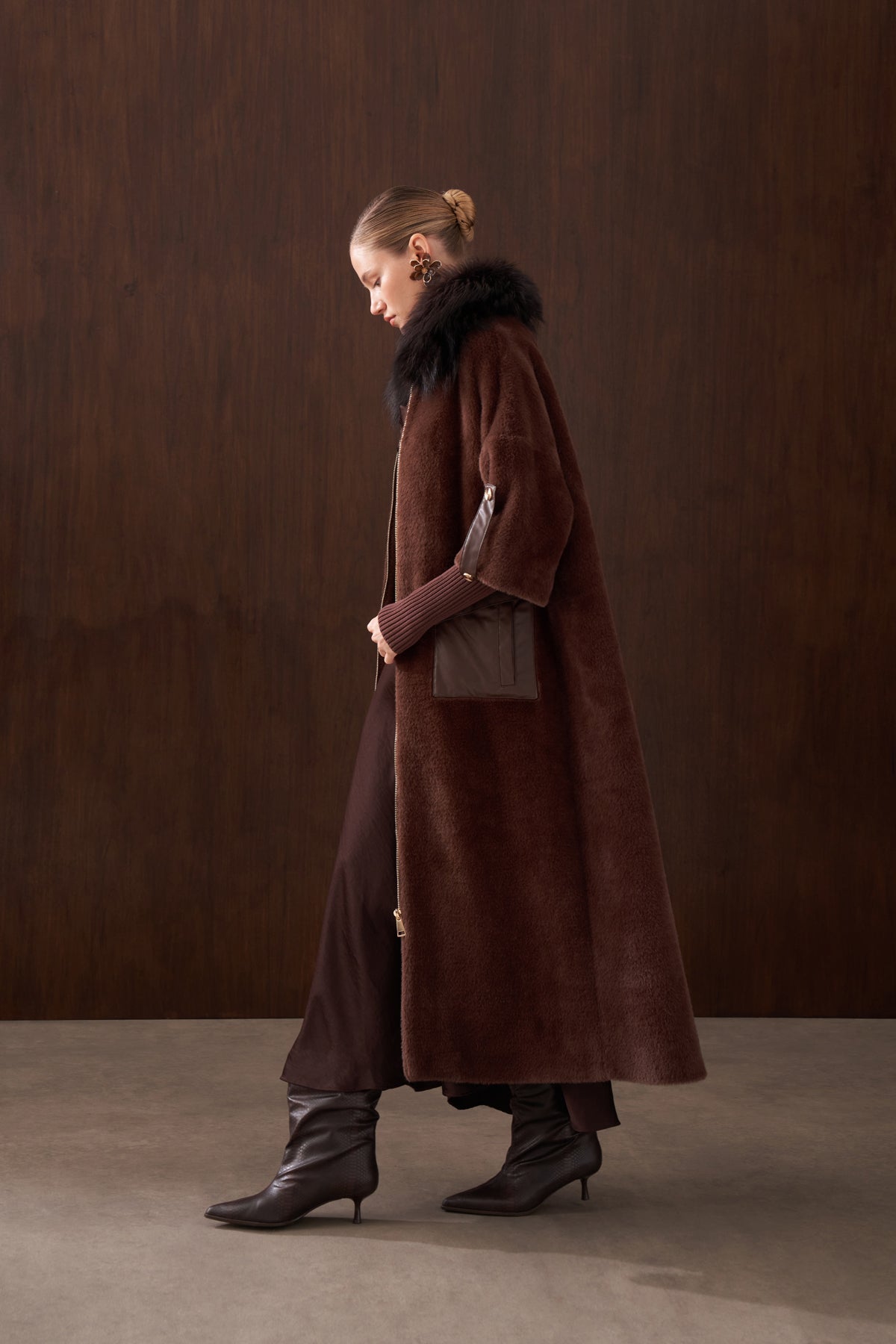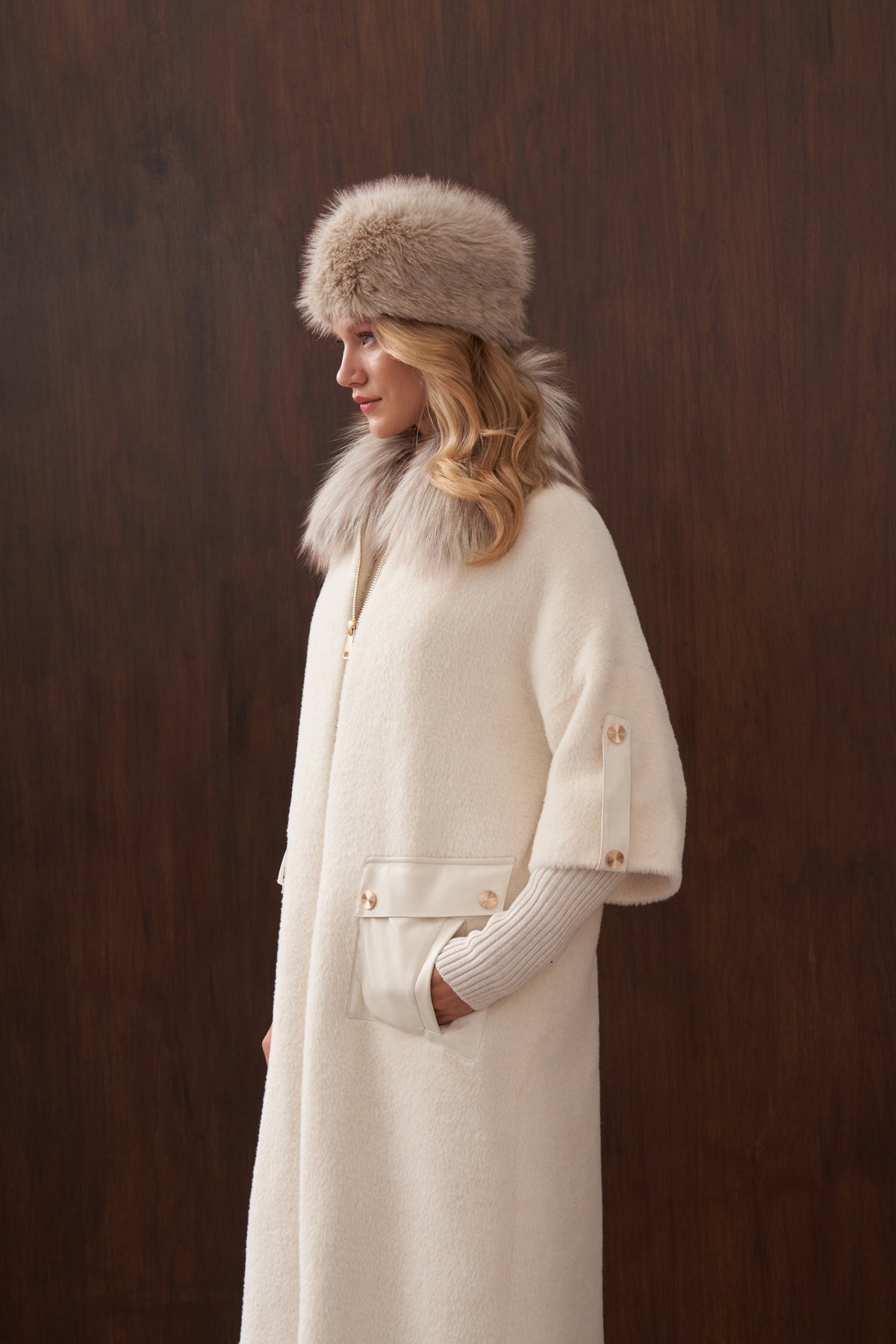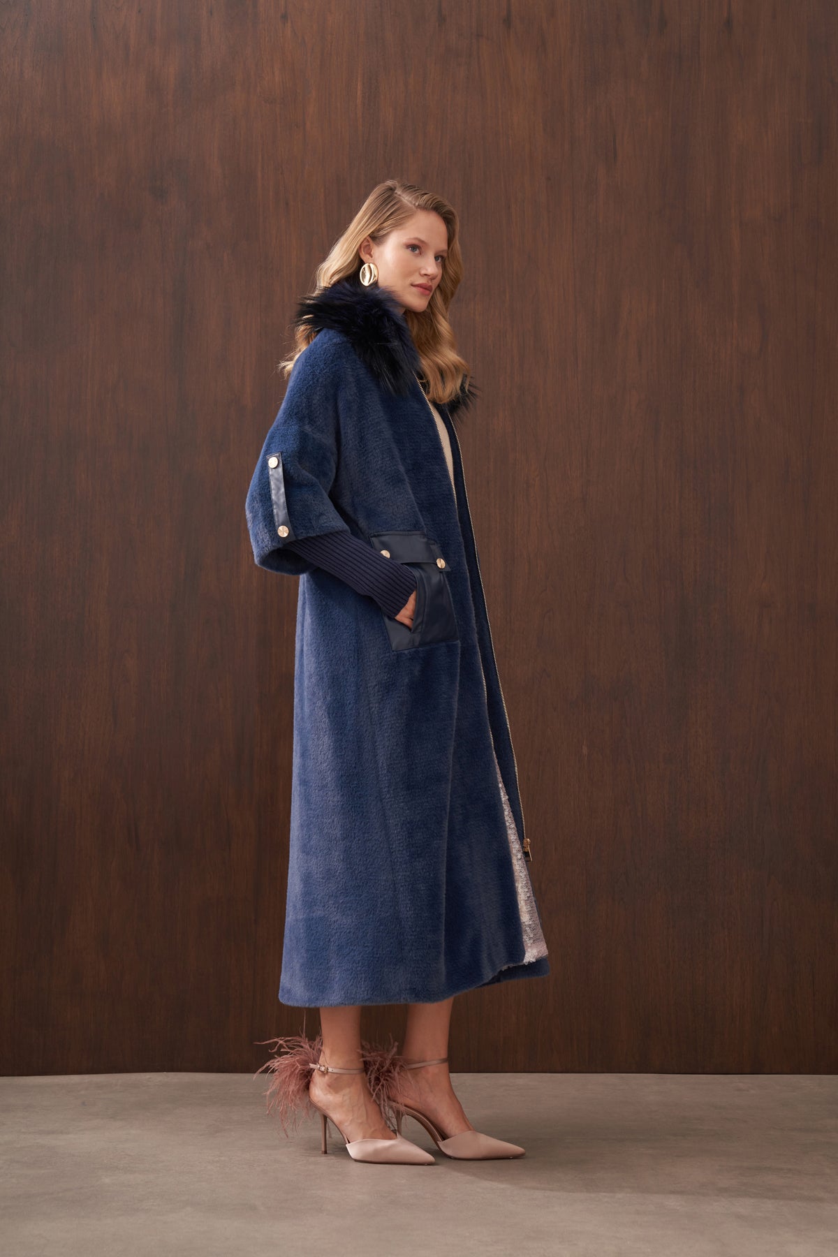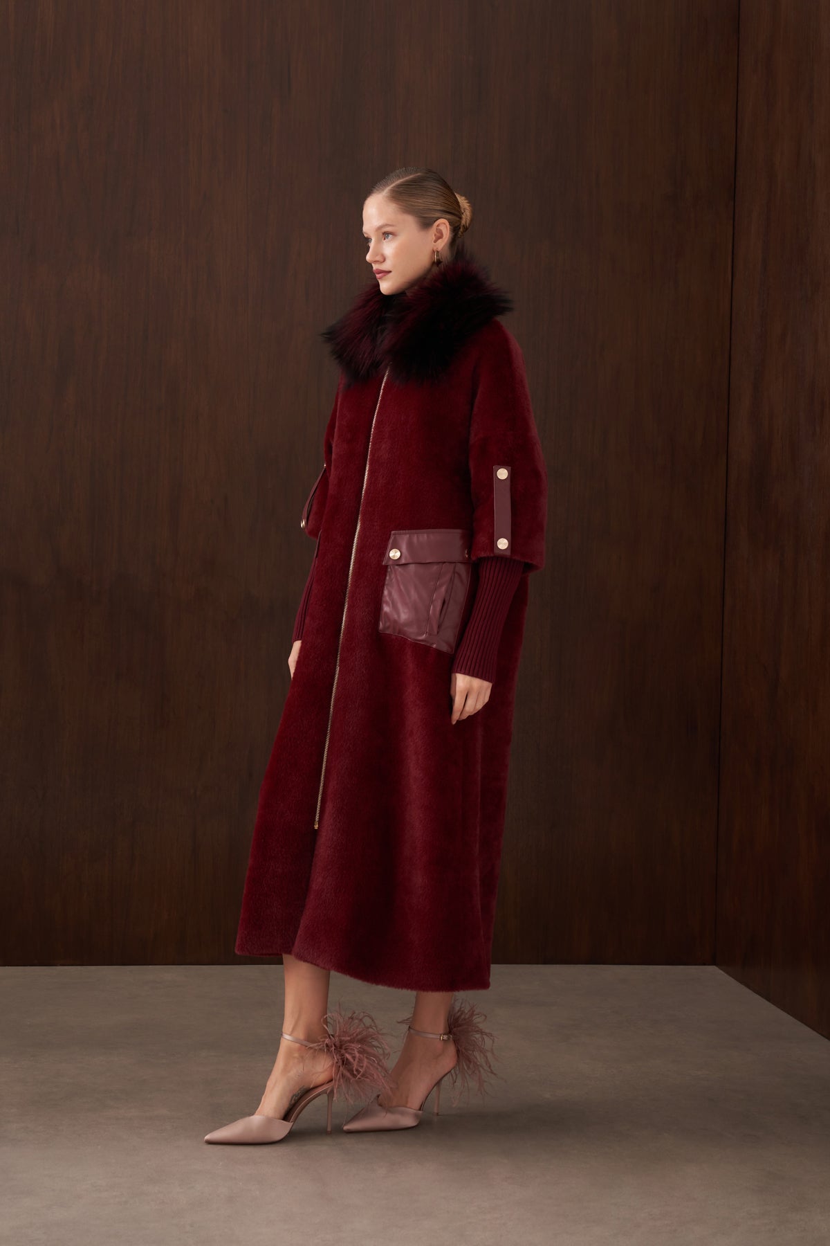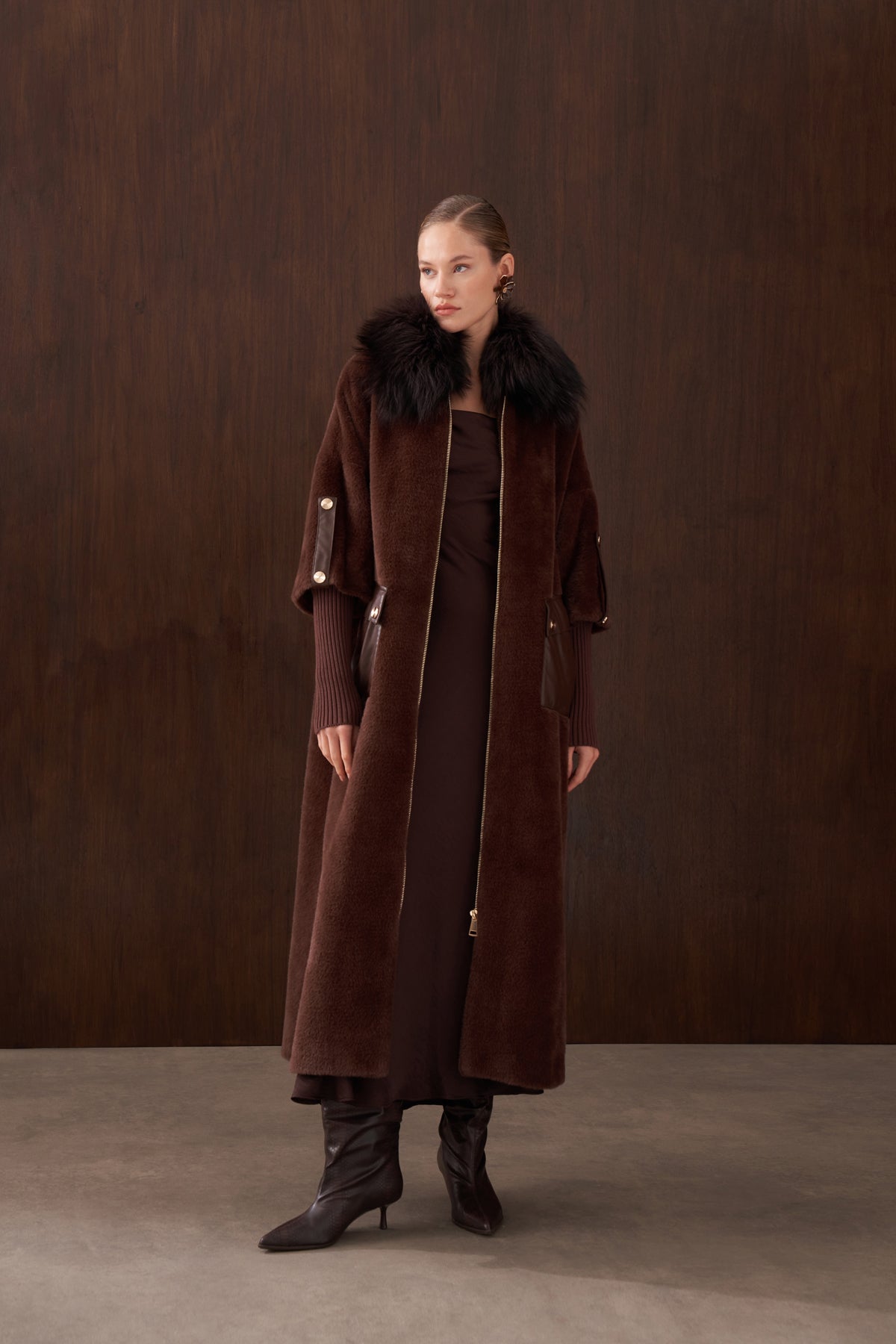 Ürün Angora kumaştan üretilmiştir. İçi astarlıdır. Kürk detayı ve apoletleri sabittir. Cep detayları çıtçıtlıdır , açılabilir. Angora kumaştan seyyar kemeri mevcuttur.