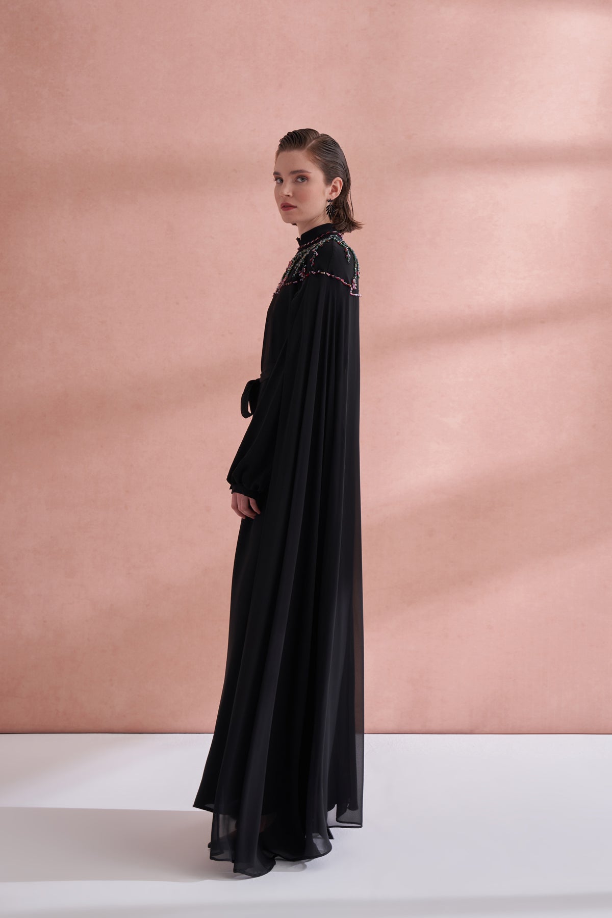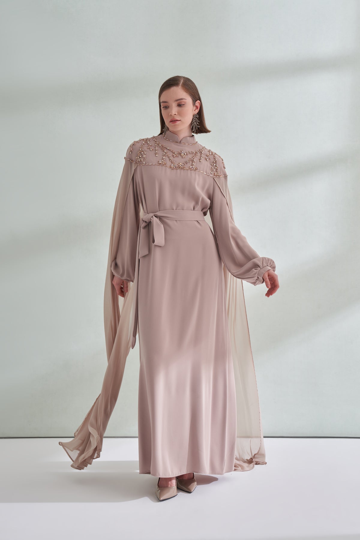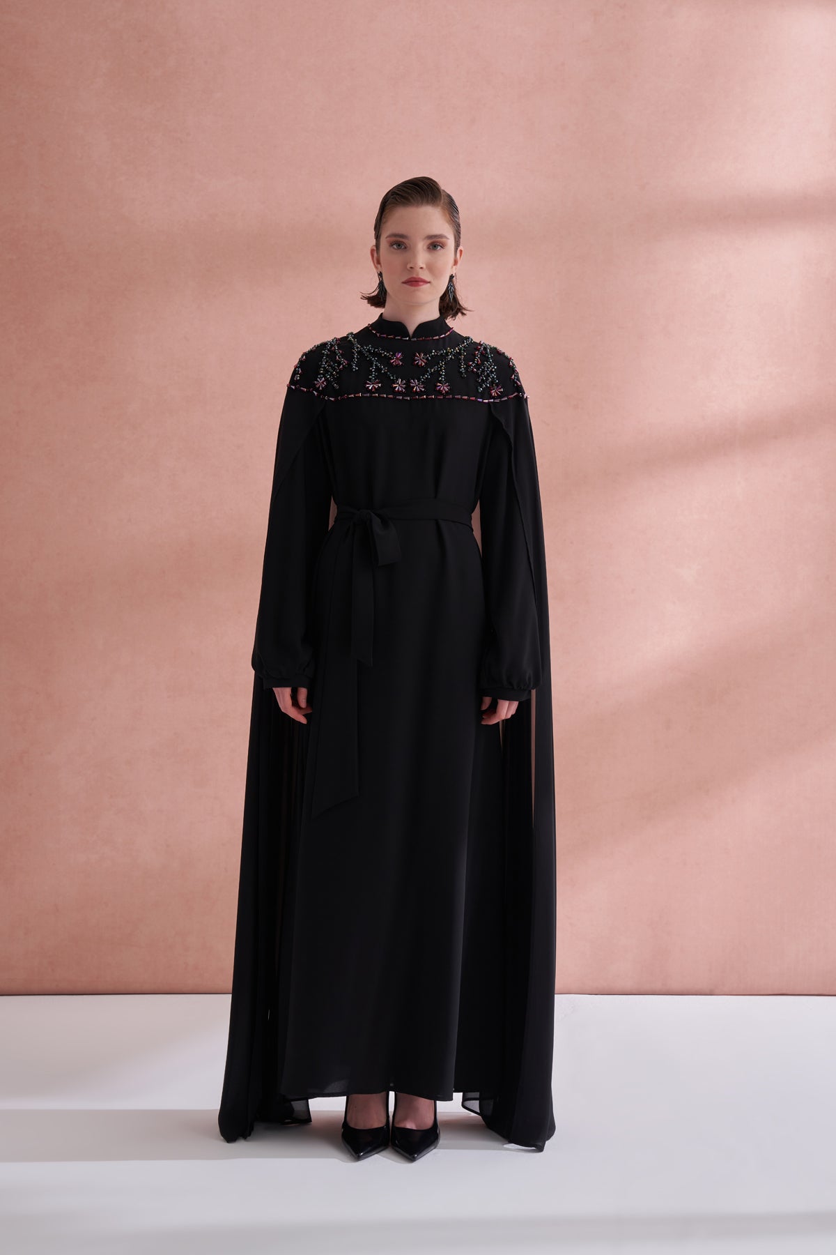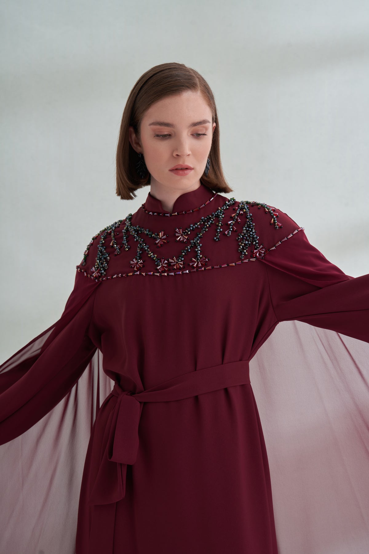 Hakim Yaka El İşi Boncuk ve Pelerin Detaylı Elbise