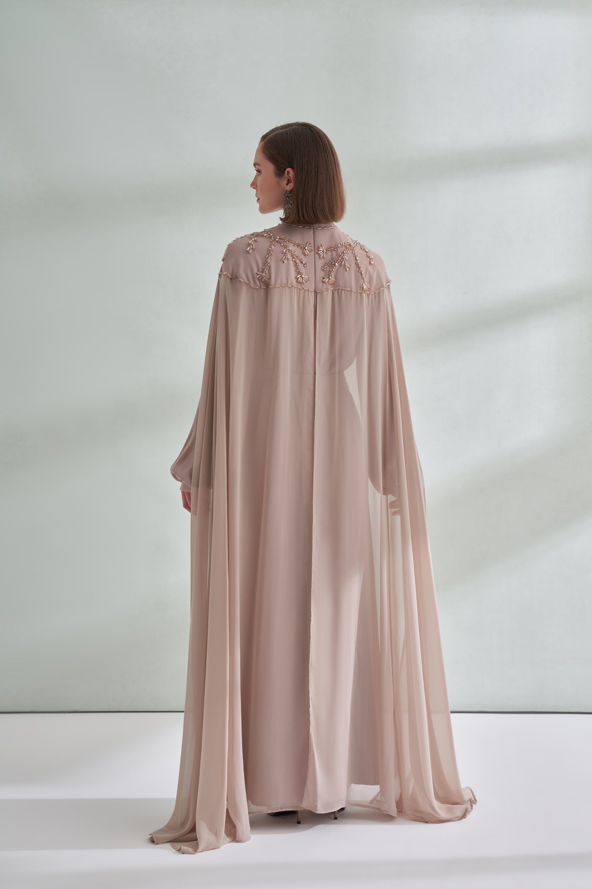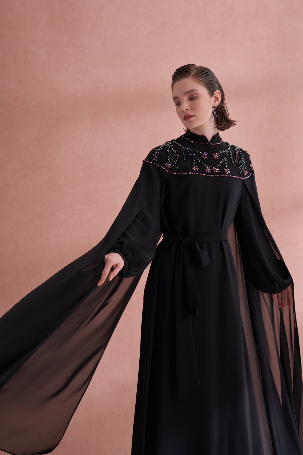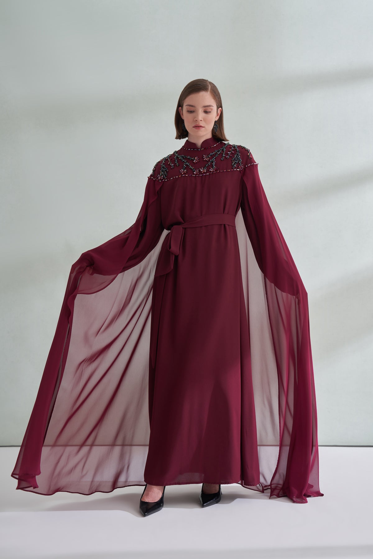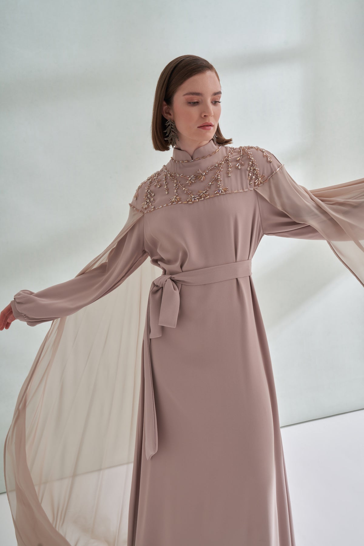 Hakim Yaka El İşi Boncuk ve Pelerin Detaylı Elbise