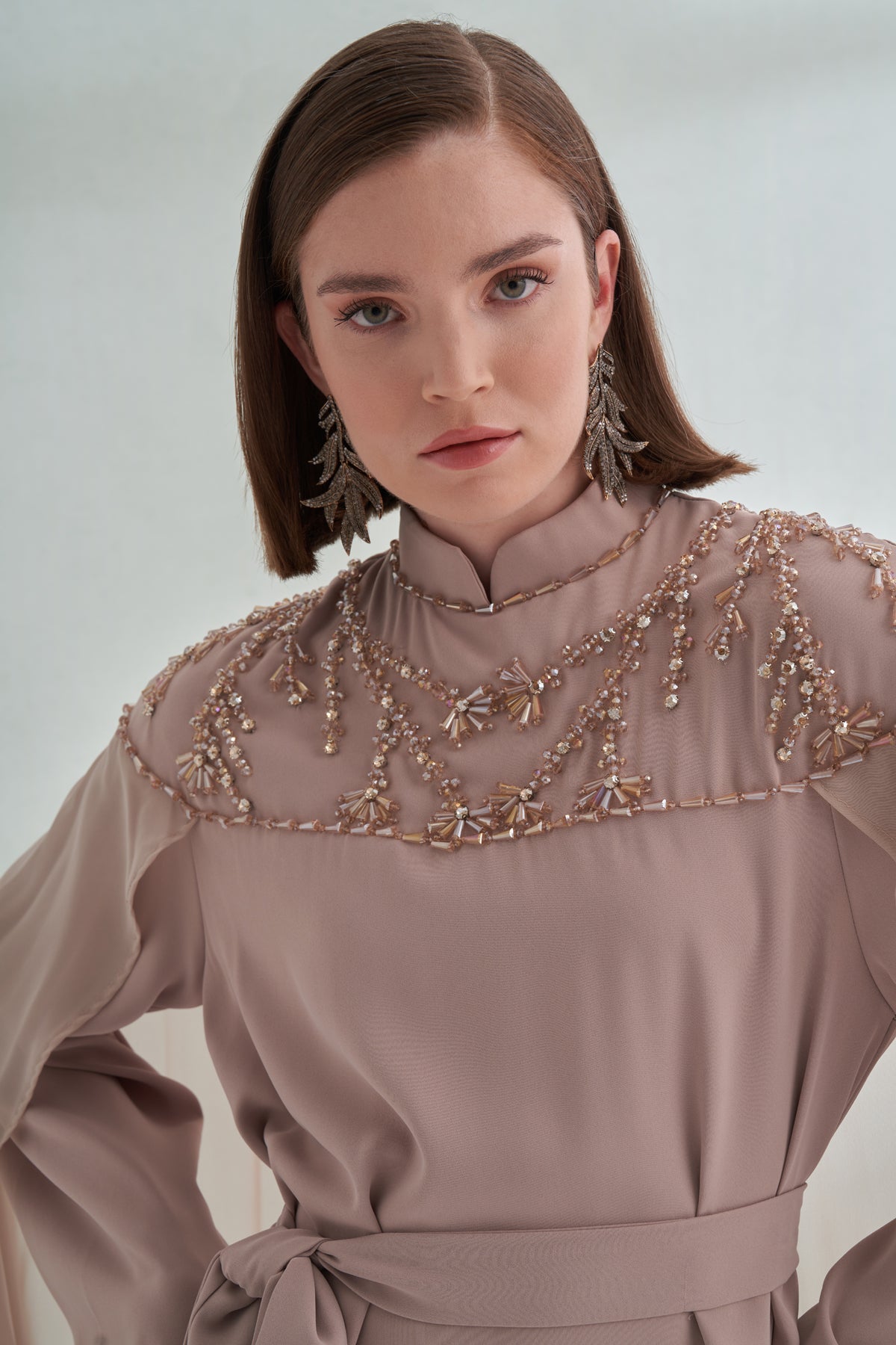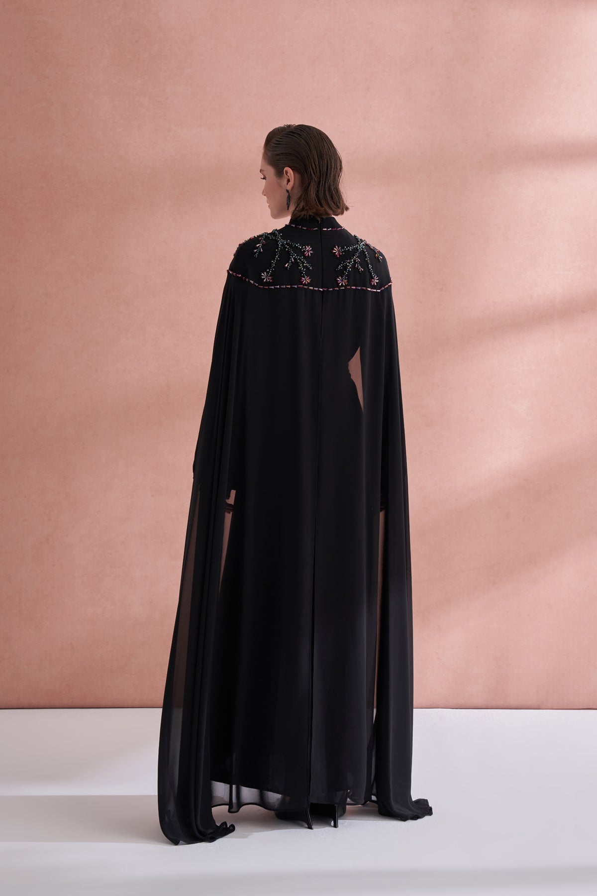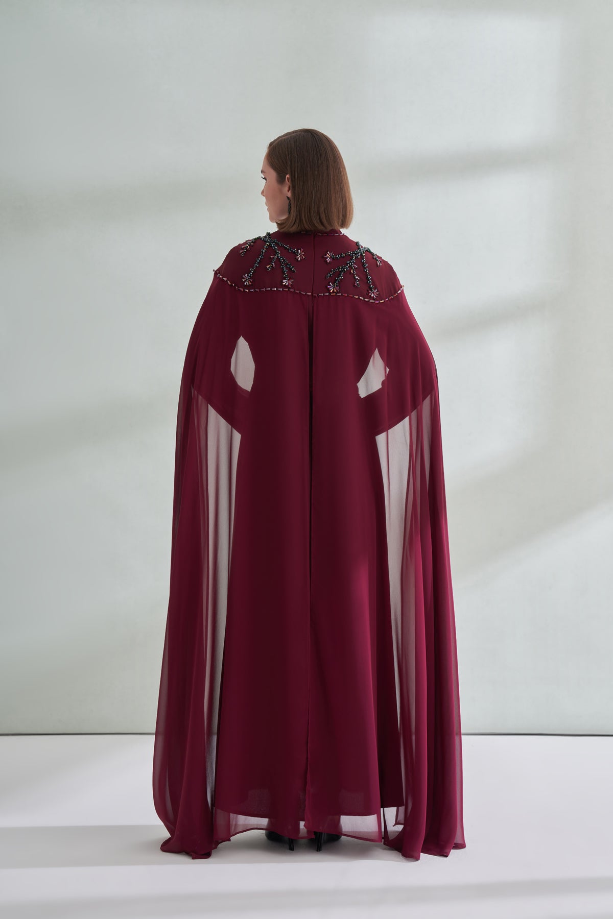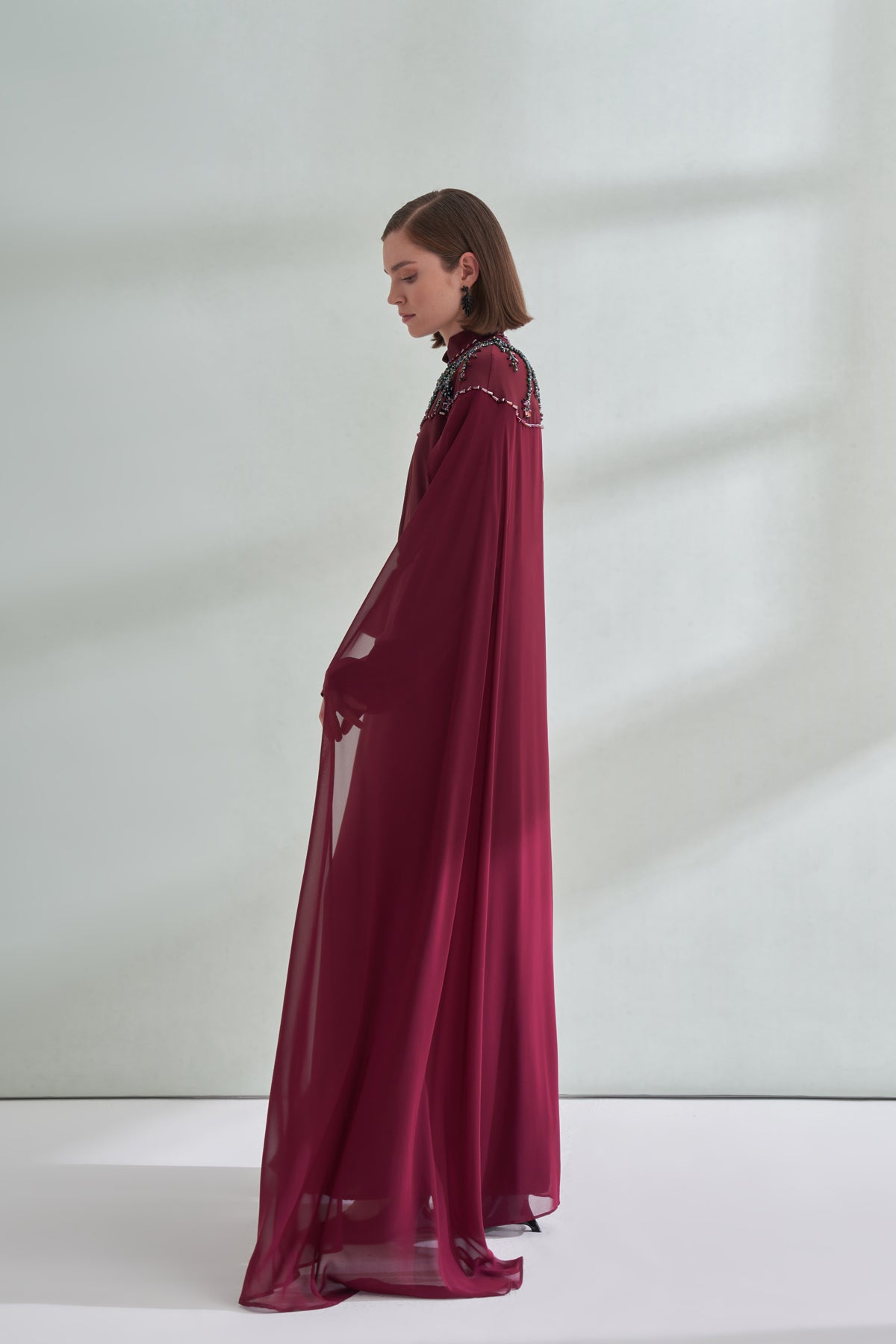 Hakim Yaka El İşi Boncuk ve Pelerin Detaylı Elbise
