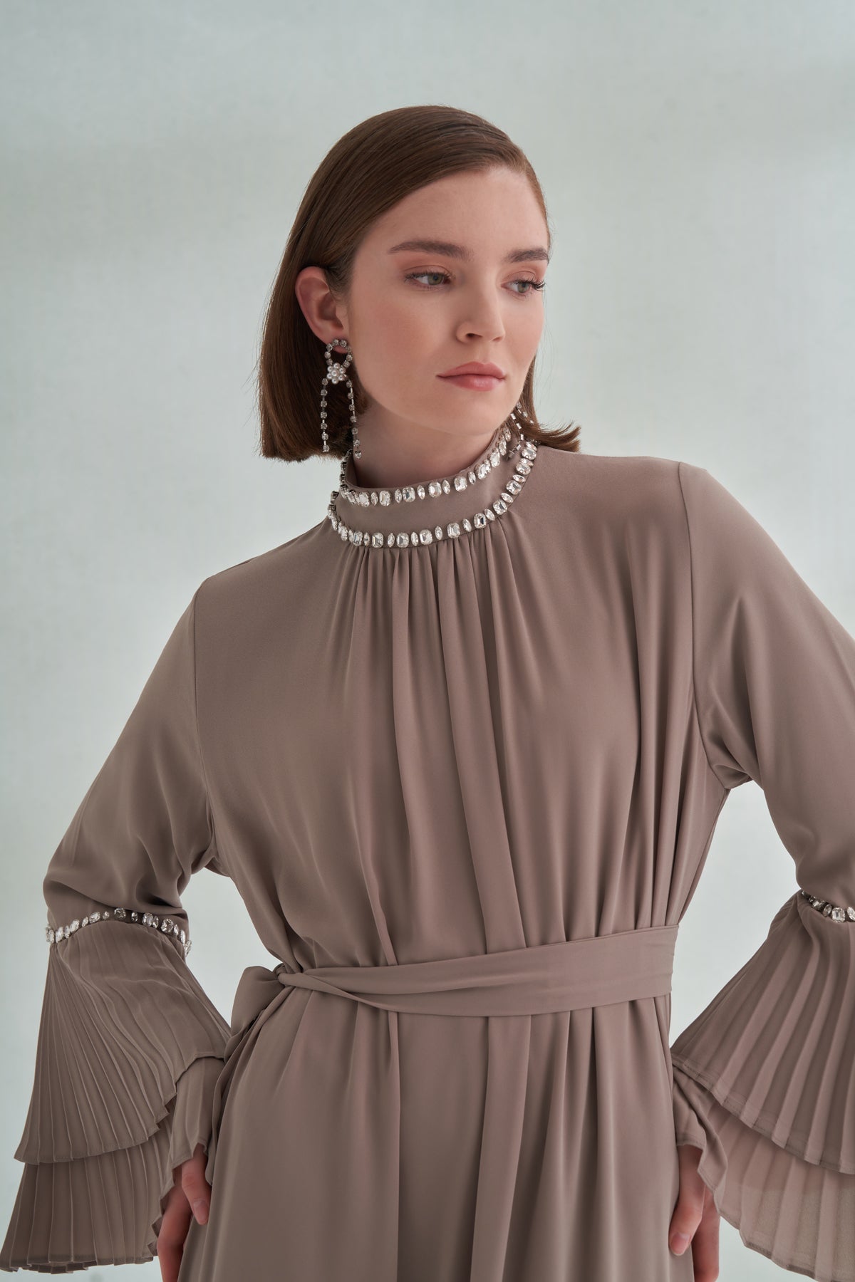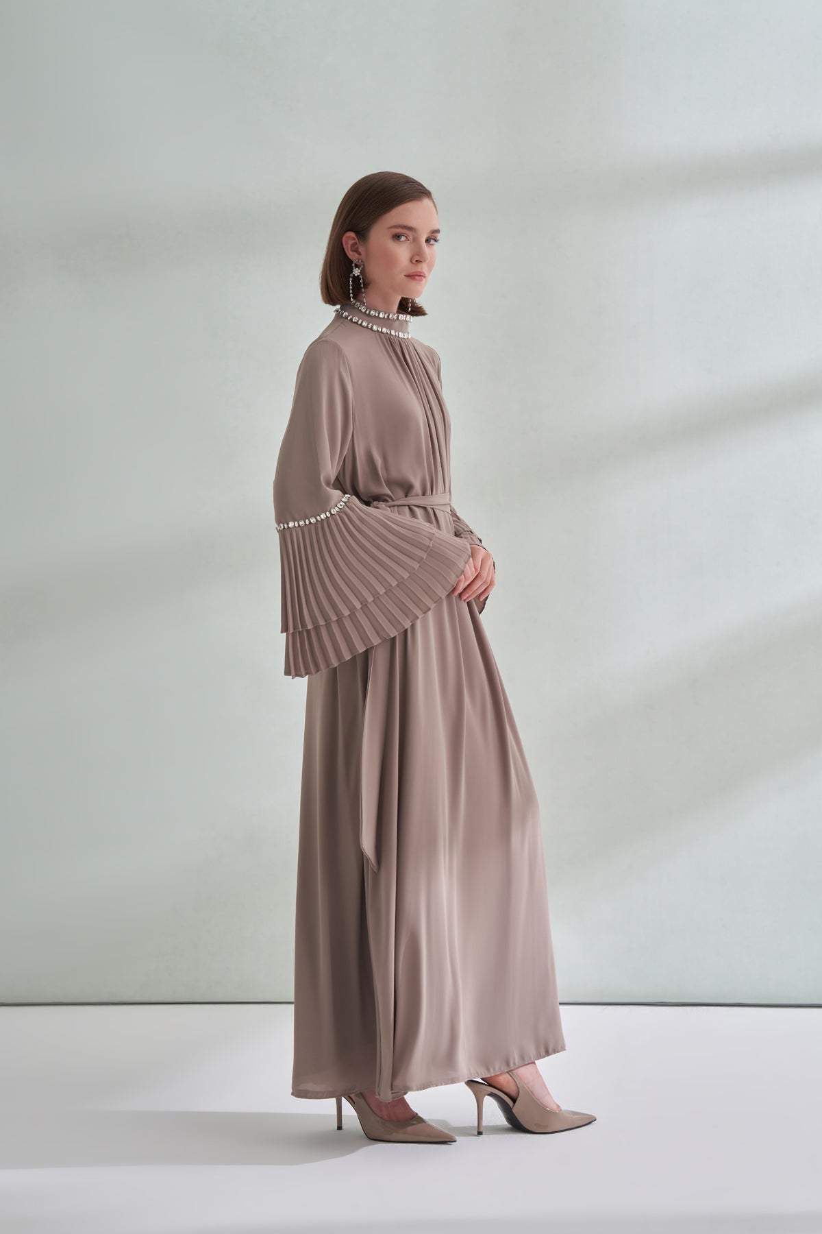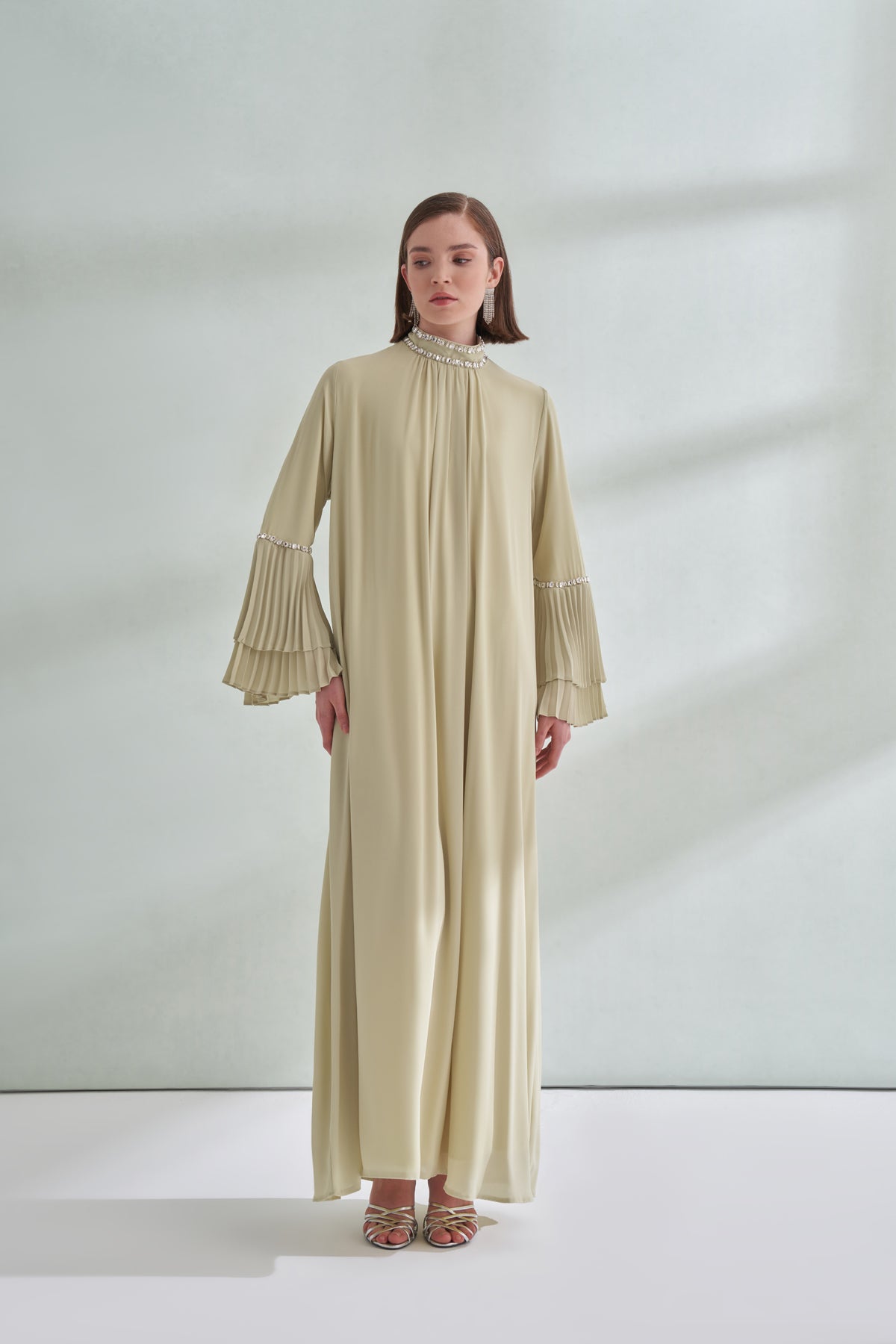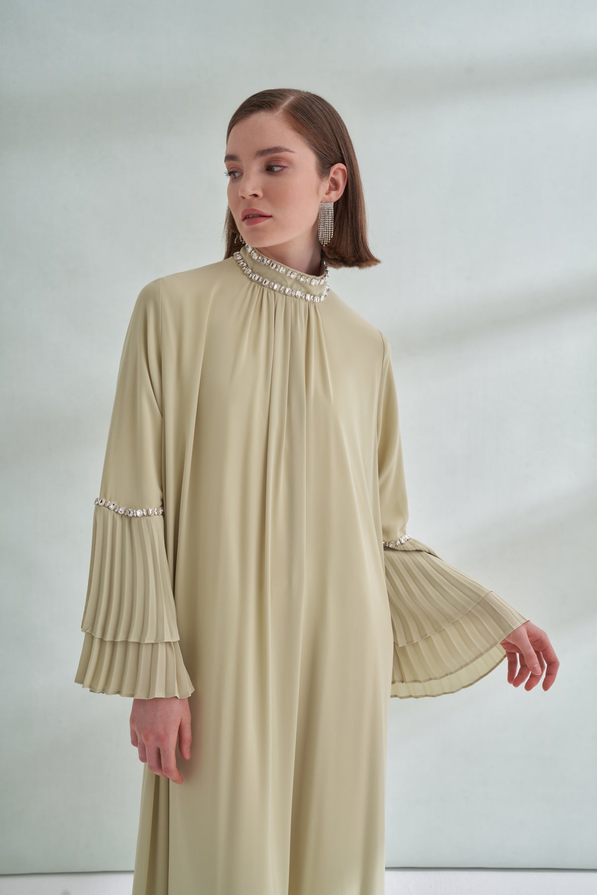 Taş ve Kolları Pilise Detaylı Elbise
