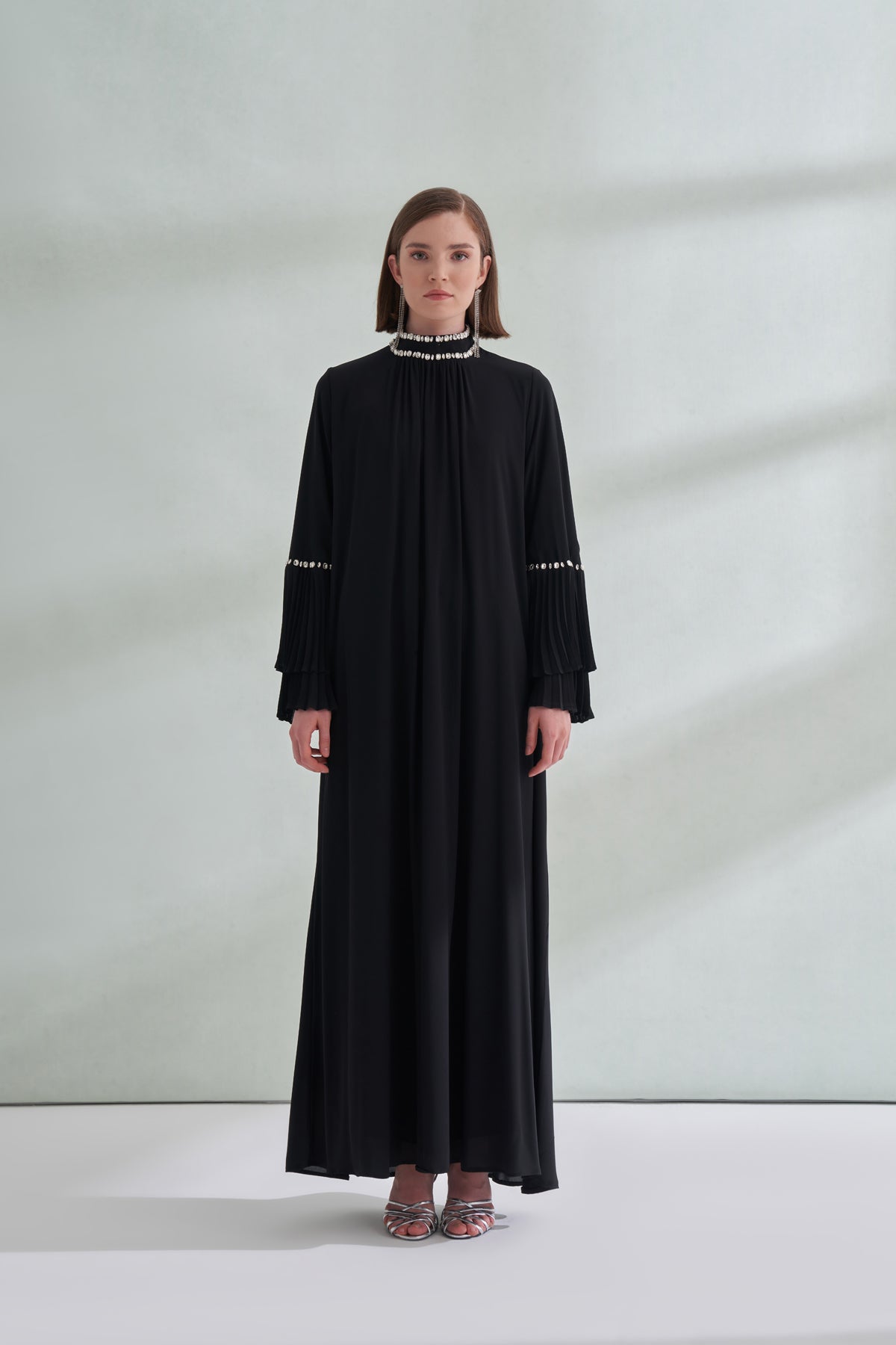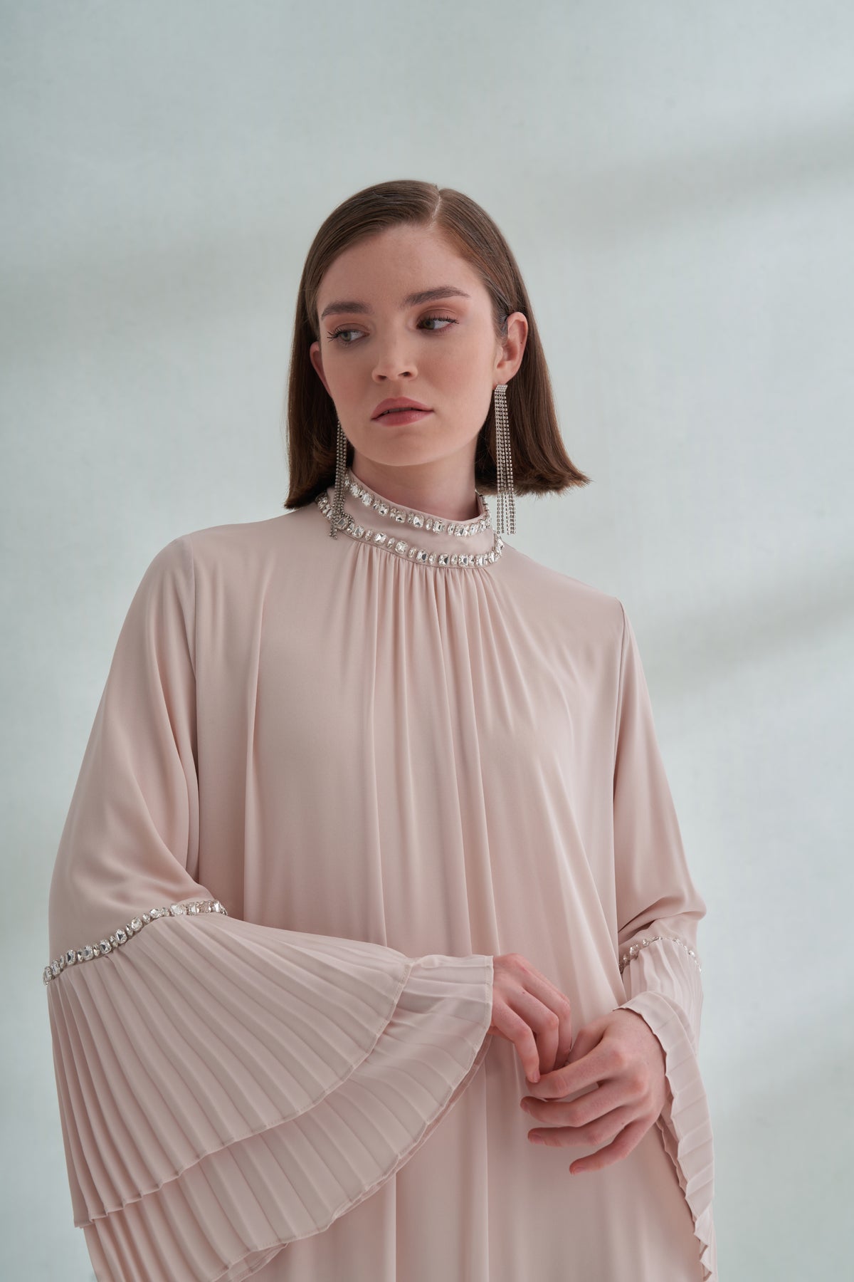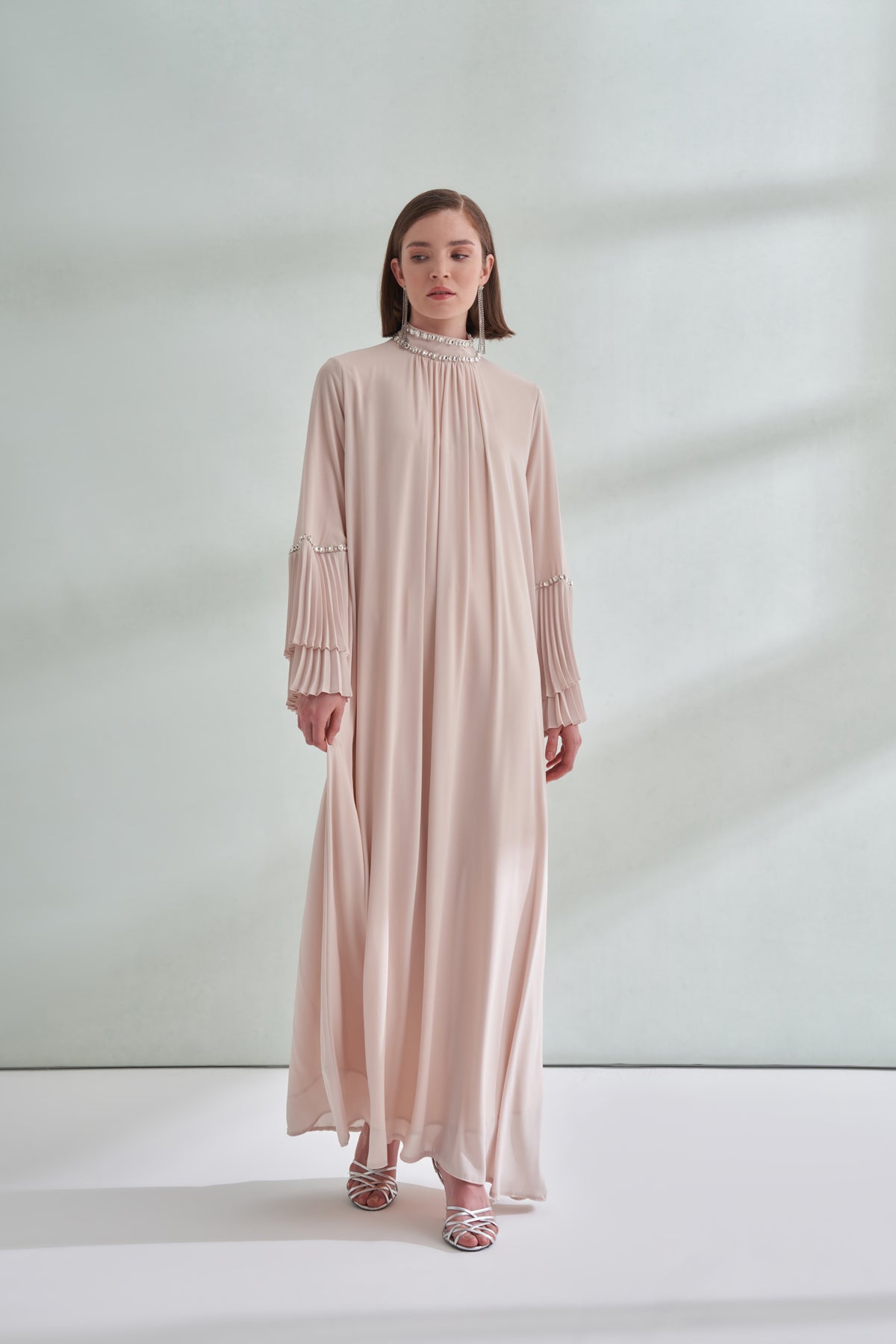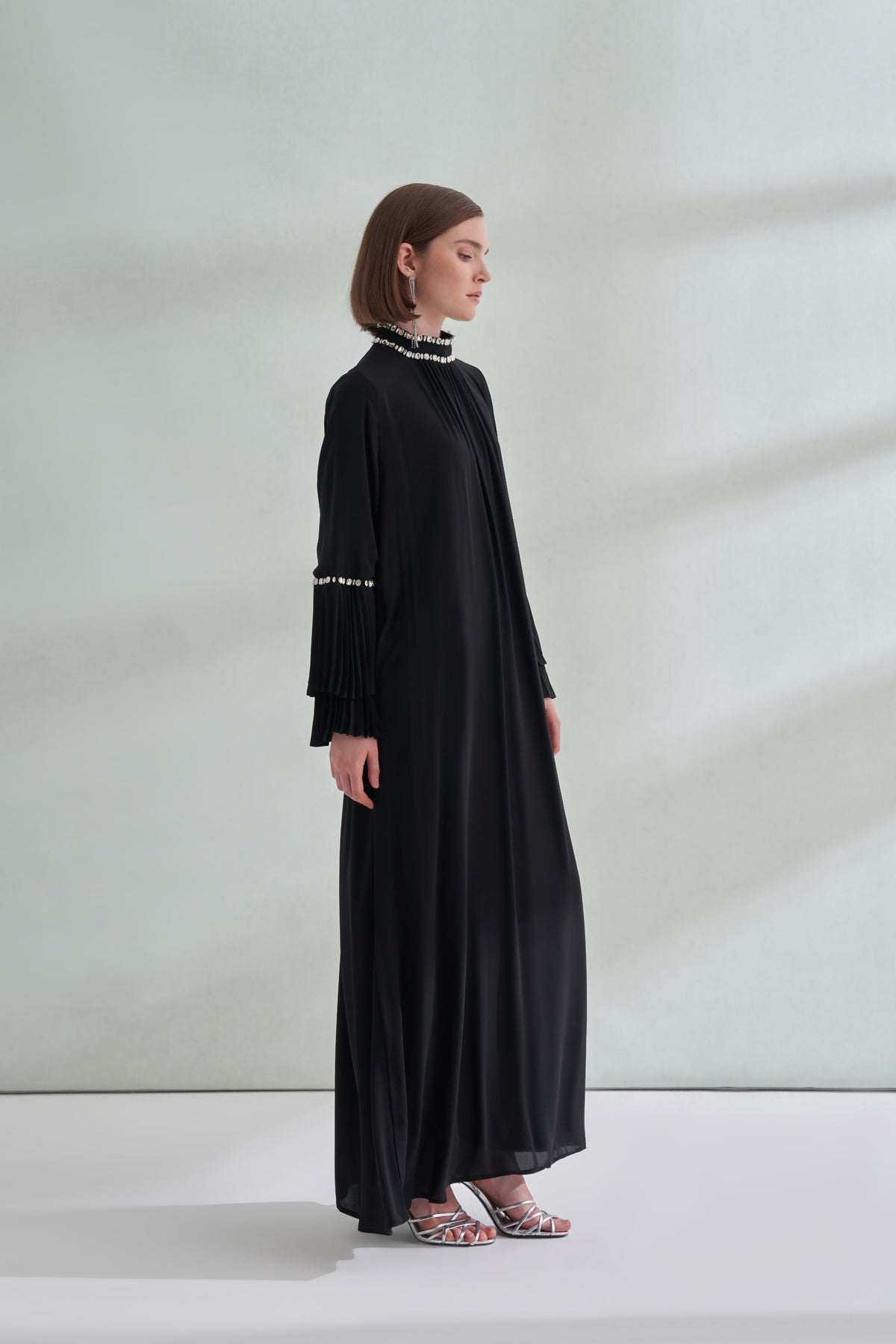 Taş ve Kolları Pilise Detaylı Elbise