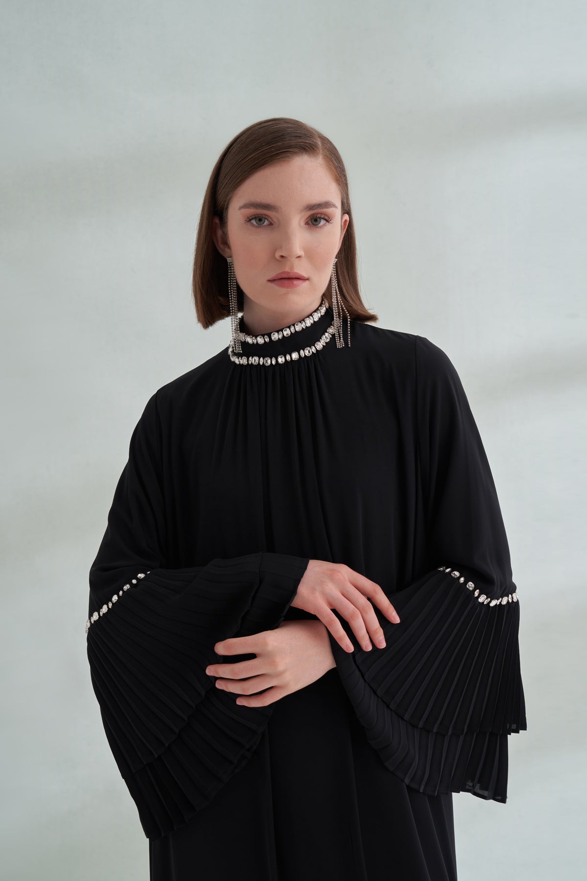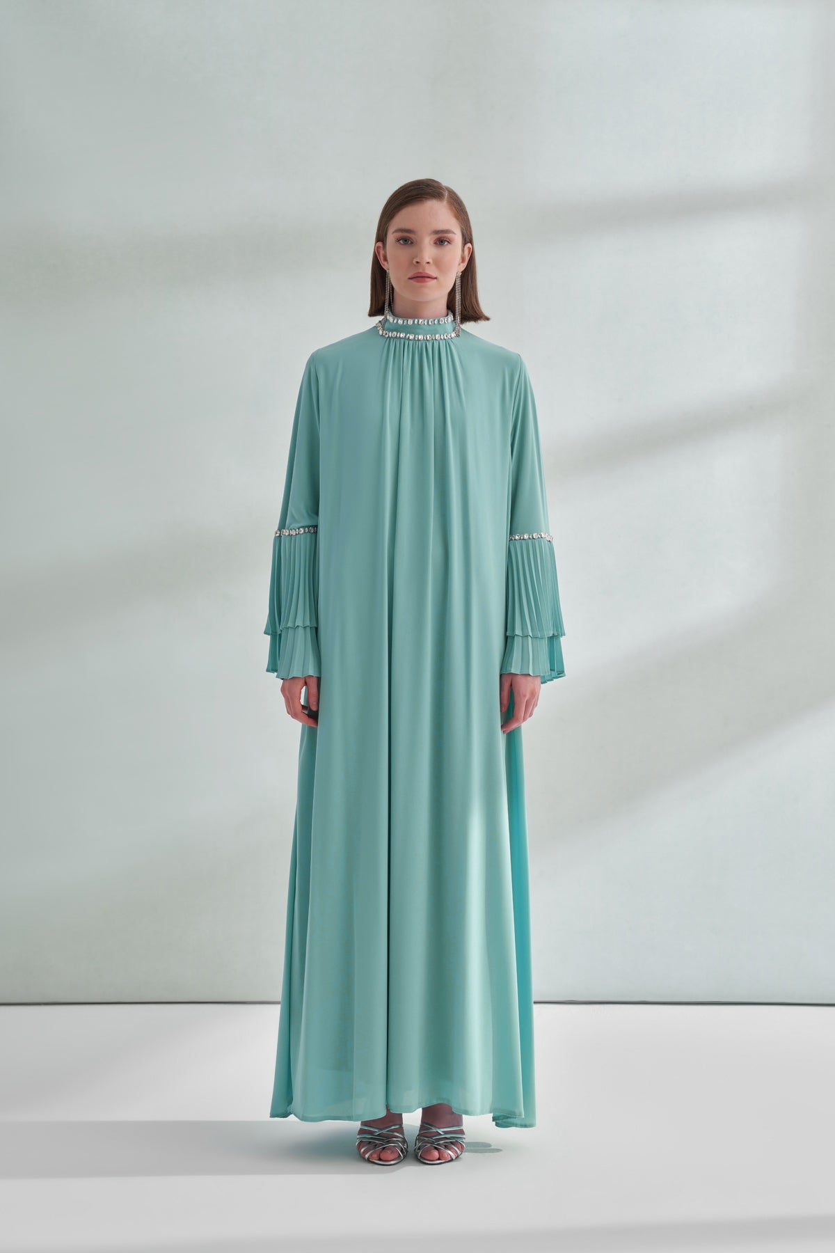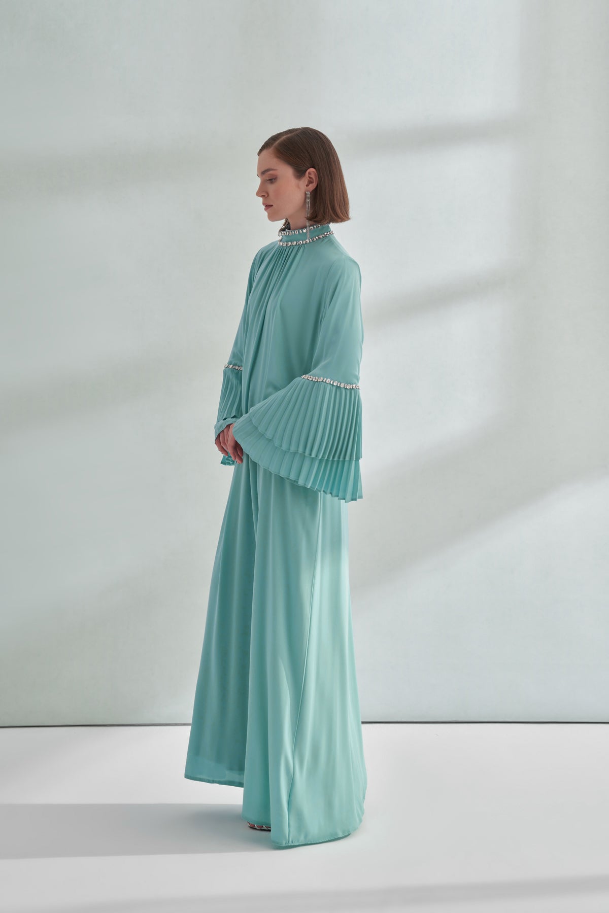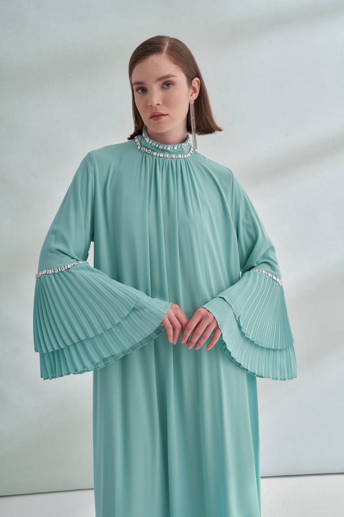 Taş ve Kolları Pilise Detaylı Elbise