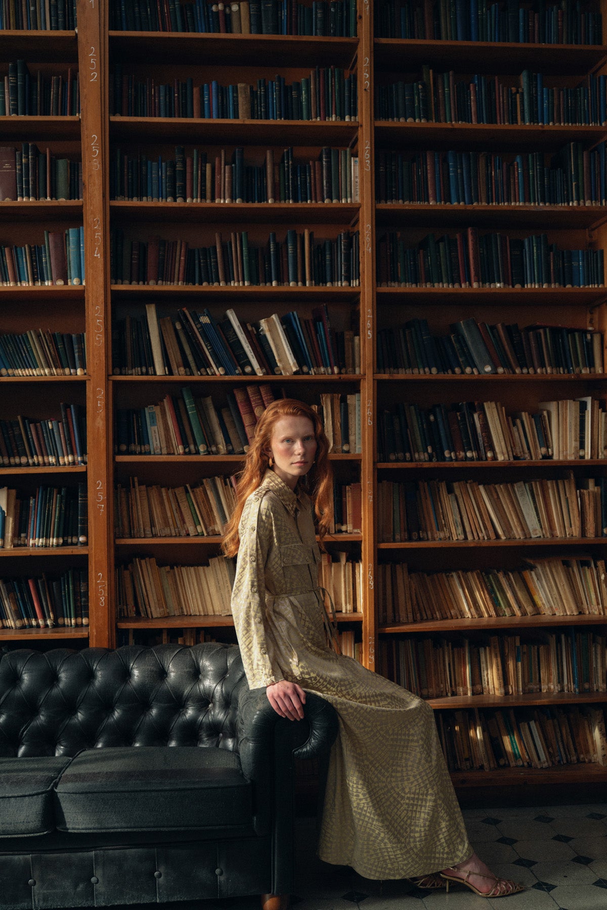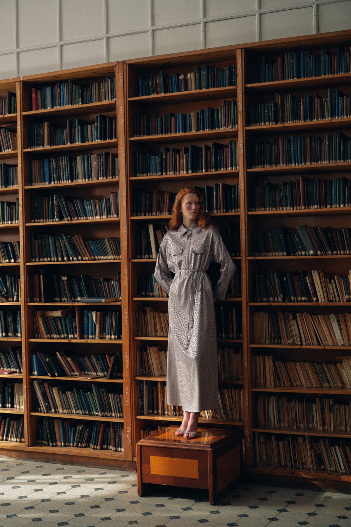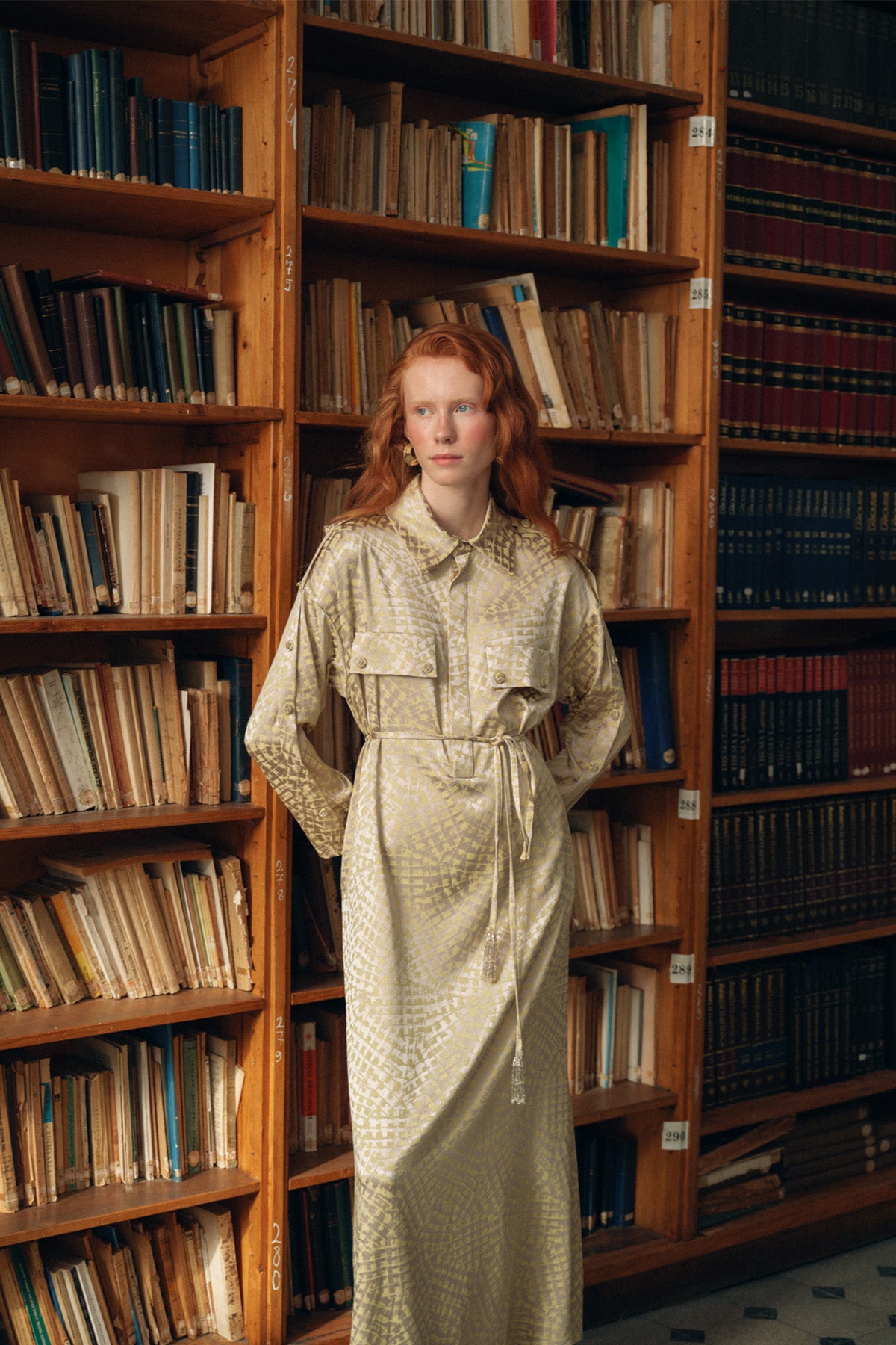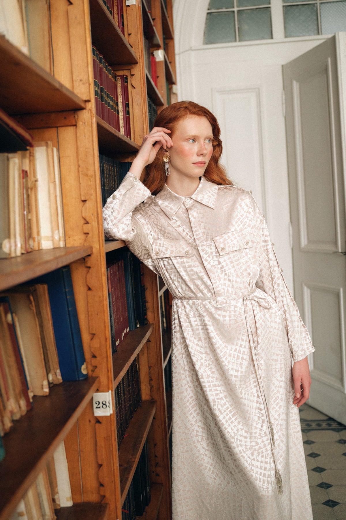 Yaka ve Ön Patlı El İşi Düğme Detaylı Elbise