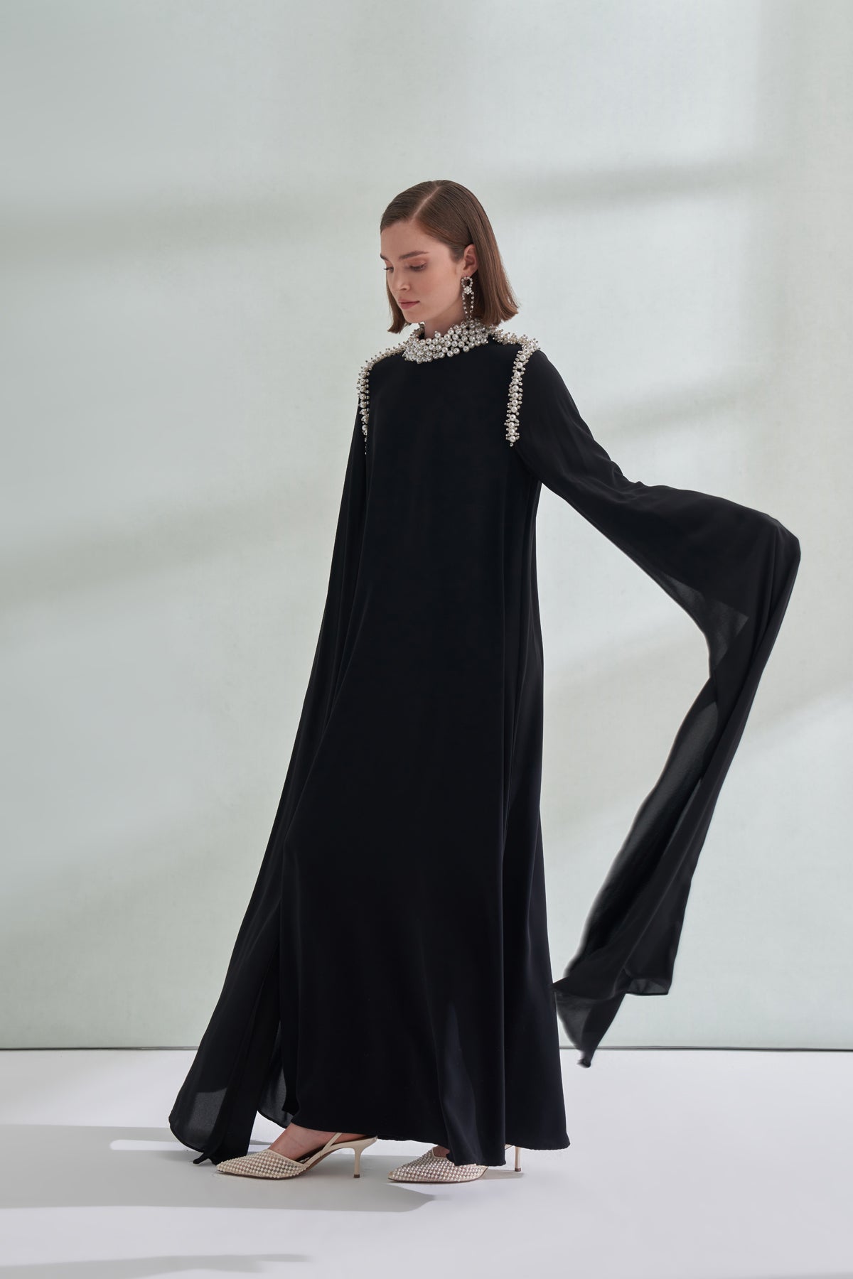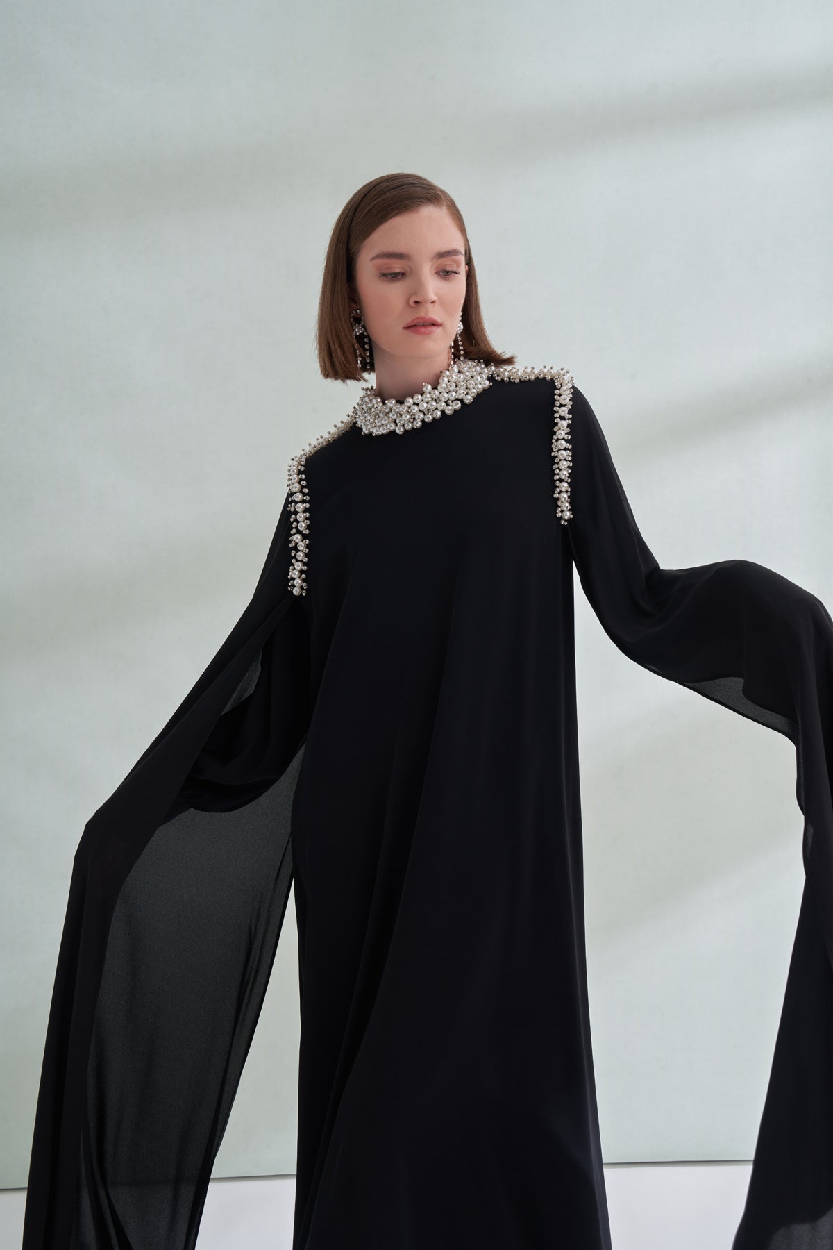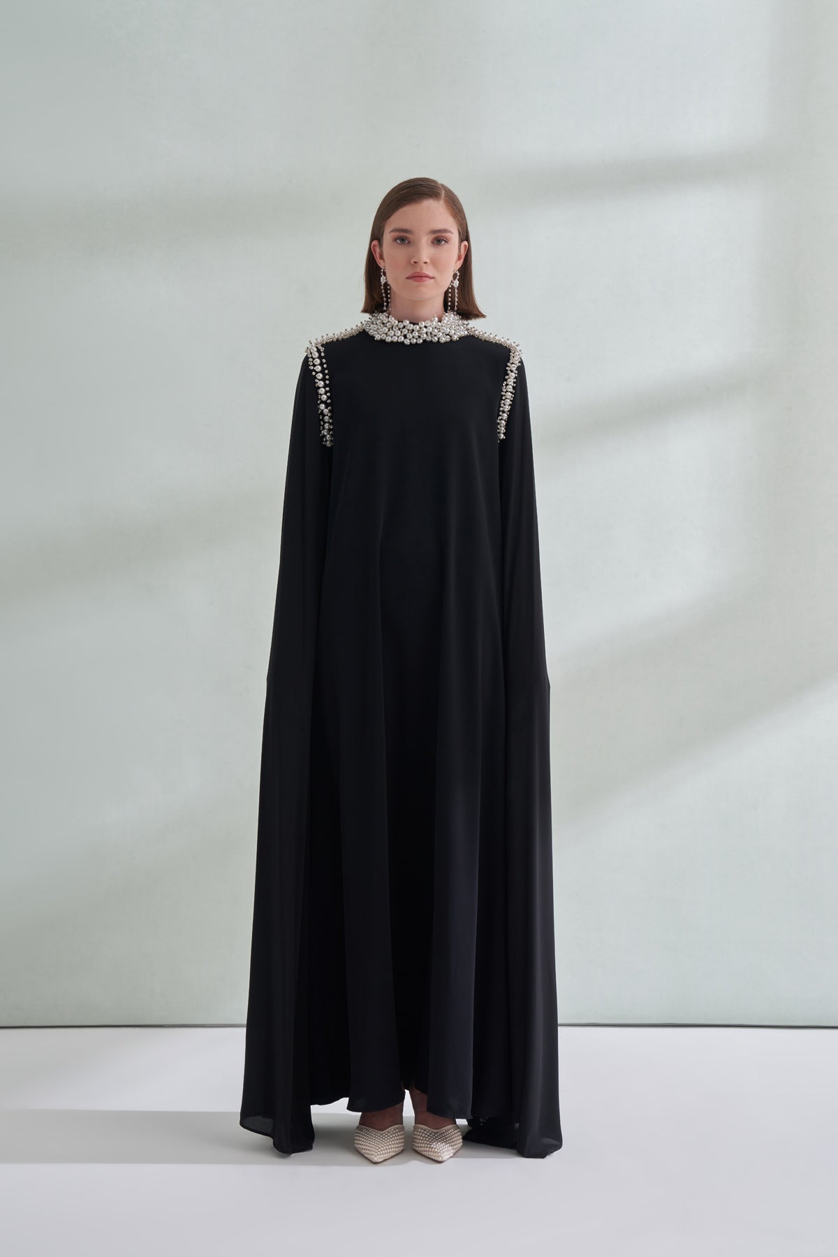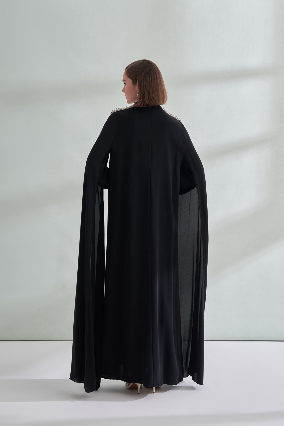Pelerin ve El İşi İnci Süsleme Detaylı Elbise