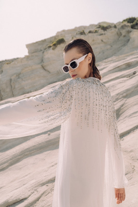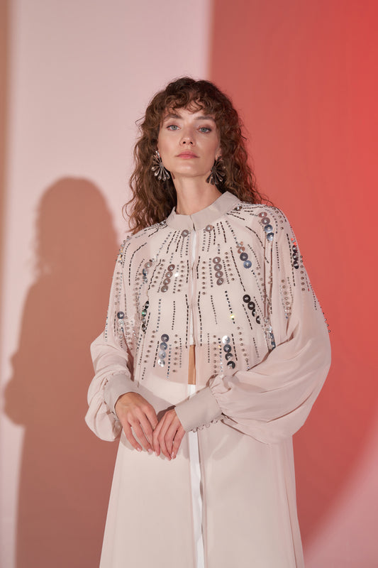 Reglan Kol İnci Çakım Şifon Abaya - Bej