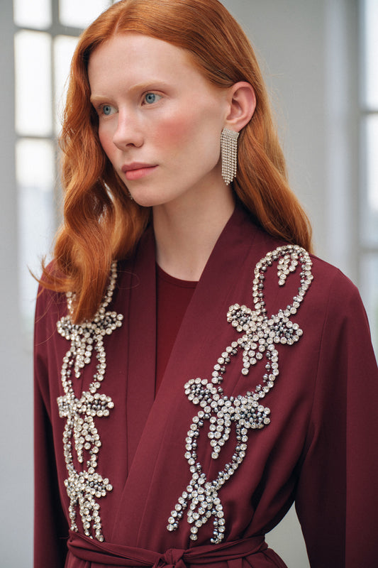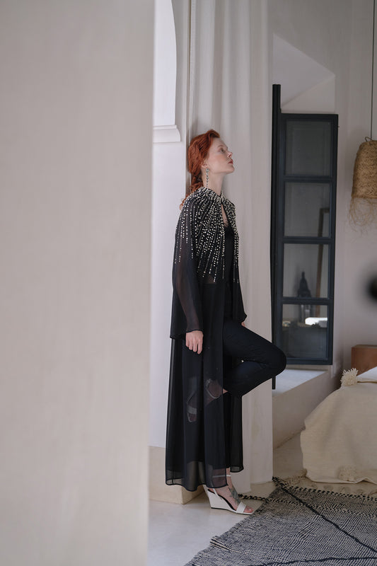 Ön Arka Drapeli, Serpme Taş İşlemeli Abaya - Parlement
